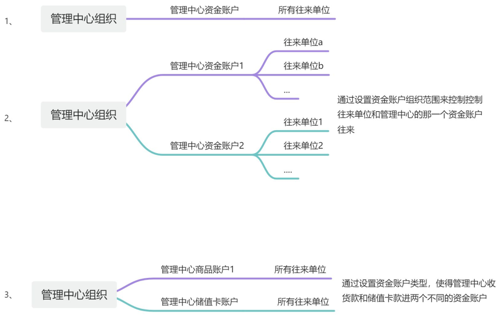 2、管理中心有两个及以上相同账户类型的资金账户,不同往来单位跟对应的管理中心资金账户往来。就需要设置各资金账户的范围。