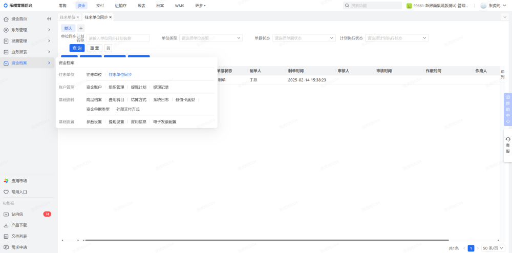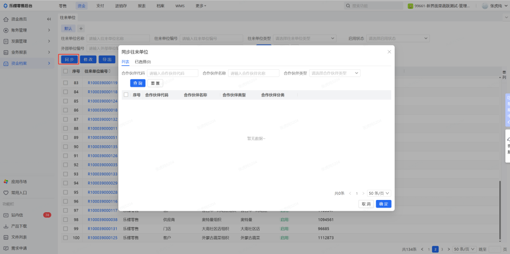 同步:供应商、客户、分销商,需要从业务系统手动同步生成资金系统的往来单位