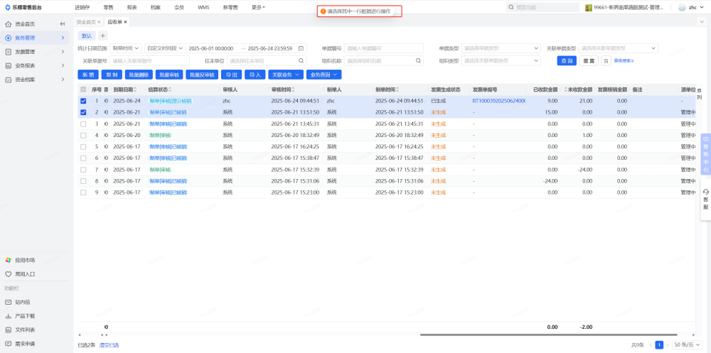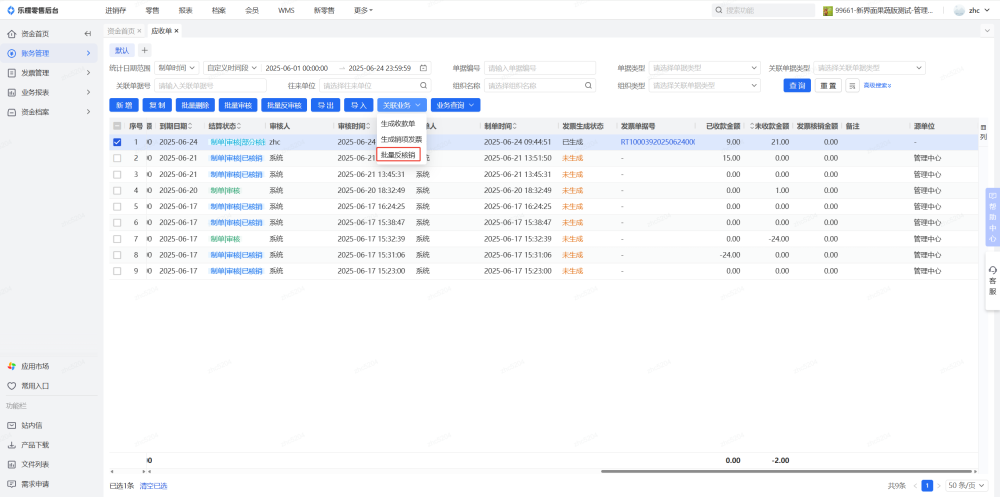单据种类: 收款单,付款单 当核销选择了应收单(正),则多显示应收单(负),应付单(正),反之现实应付单(负),应收单(正)