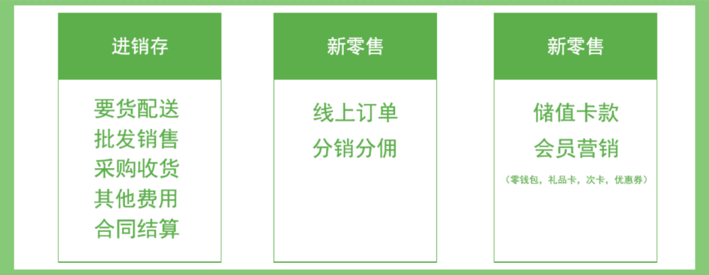 品牌方-加盟店:货款结算、储值卡款结算、线上商城结算、其他费用结算、卡券积分礼品卡等营销结算
