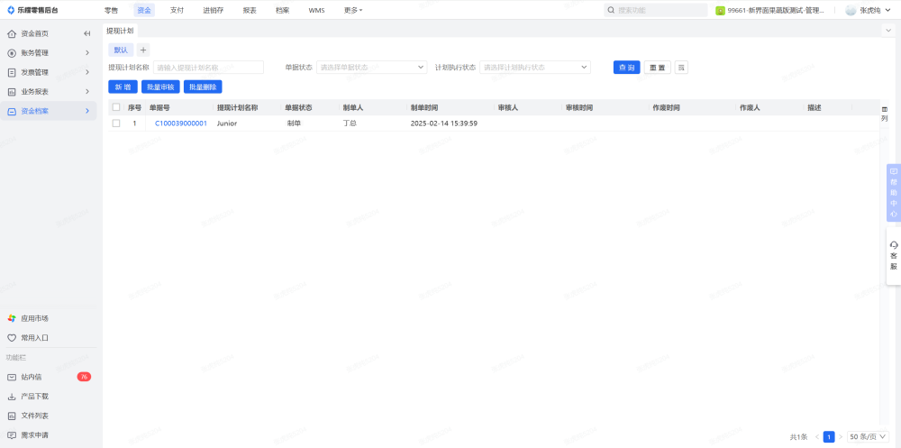 提现计划一般用于供应商,公司付款给供应商资金账户后,供应商自己是无法提现的,需要总部设置提现计划来发起提现