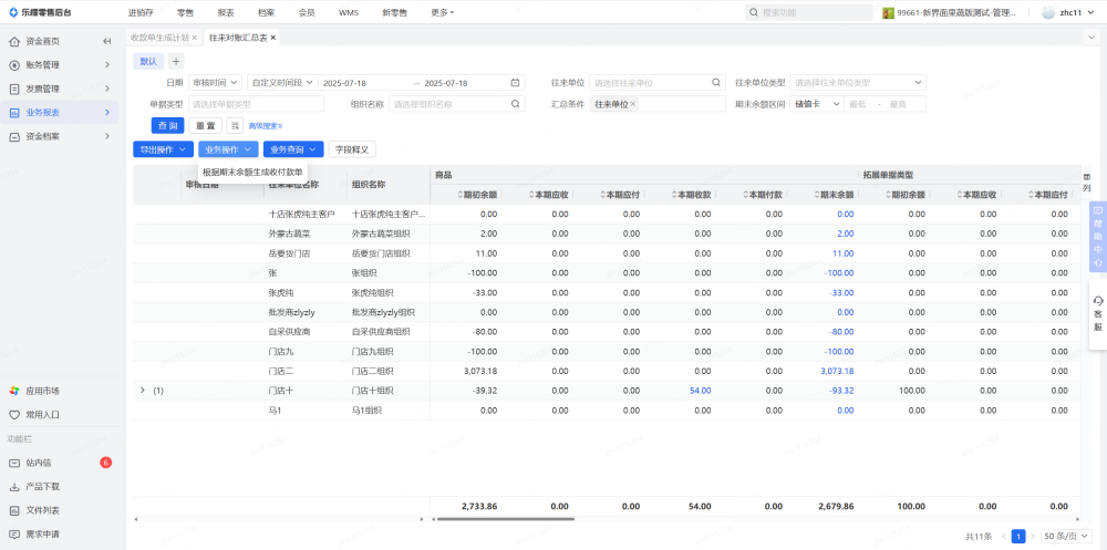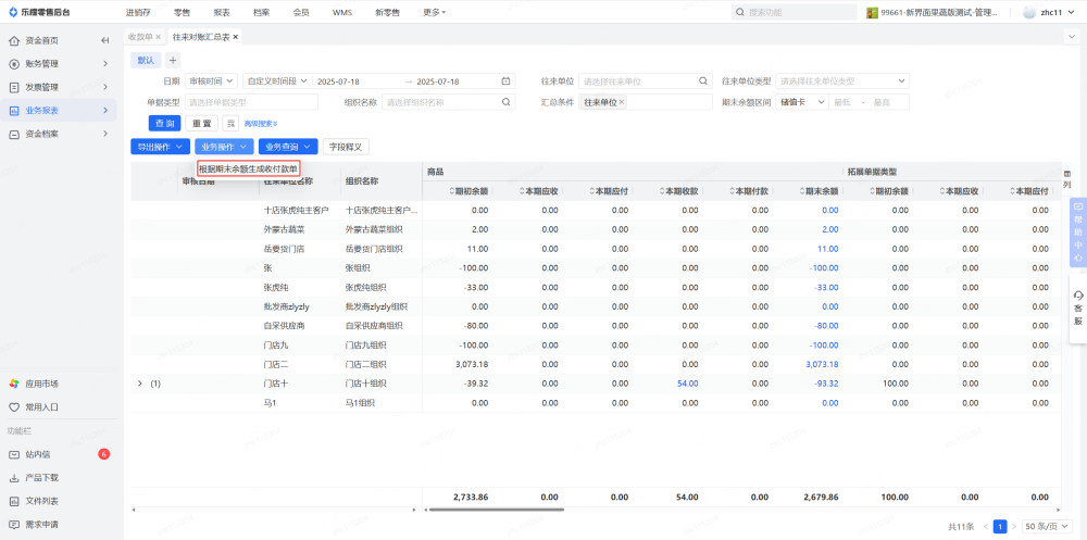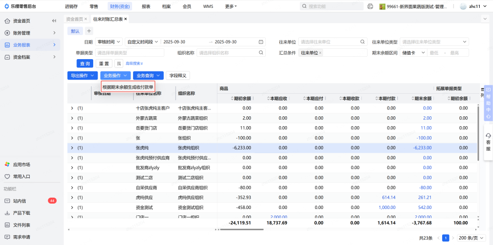 业务操作-根据期末余额生成生成收付款单,可用来平账