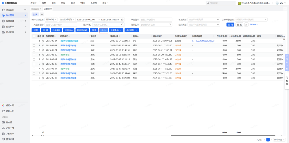 开启调入单推送:门店退货,管理中心生成调入单后自动推送到资金生成负数应收单