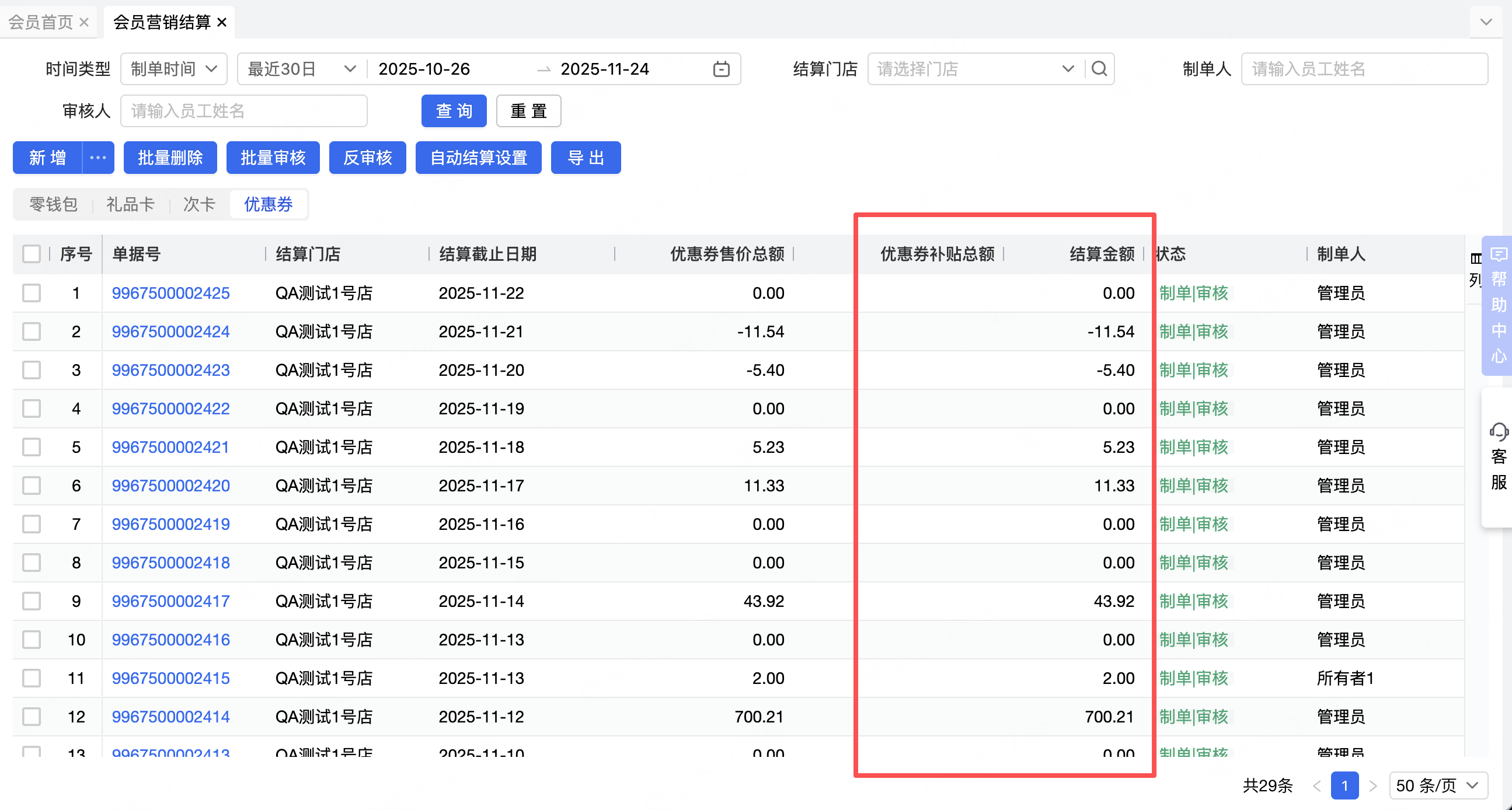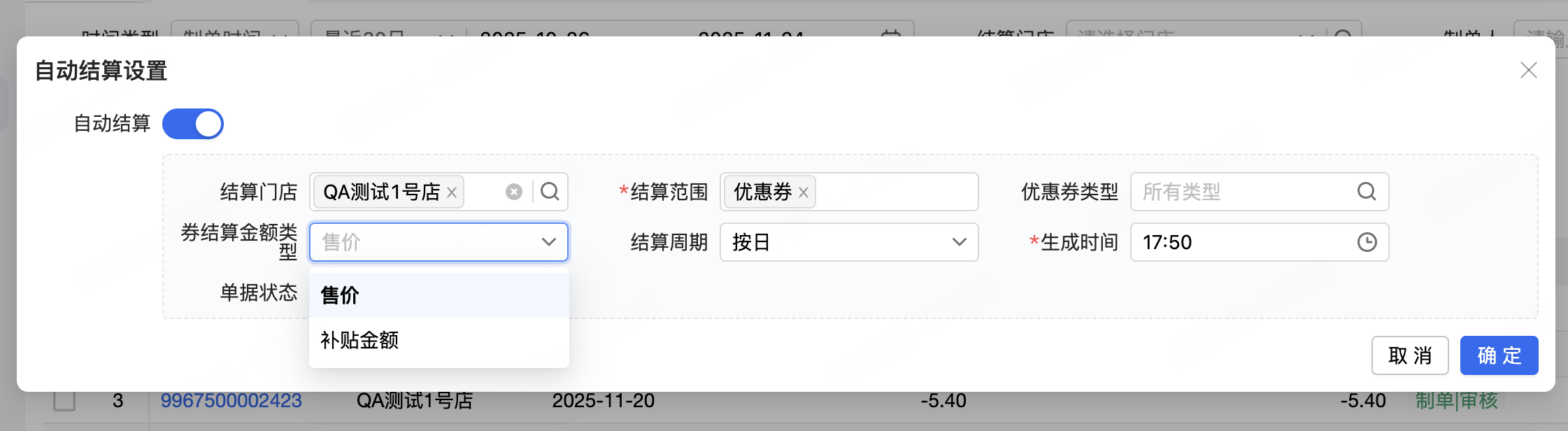 针对总部发放优惠券,针对给门店发放的券类型存在固定金额补贴时,需要按照对应的补贴金额进行优惠券结算时,我们增加了按券补贴金额进行优惠券结算的功能