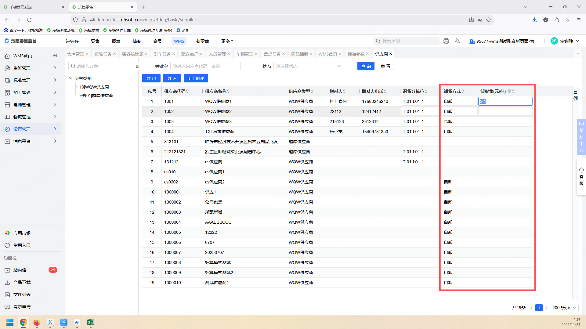 1、WMS-设置管理-供应商:卸货费