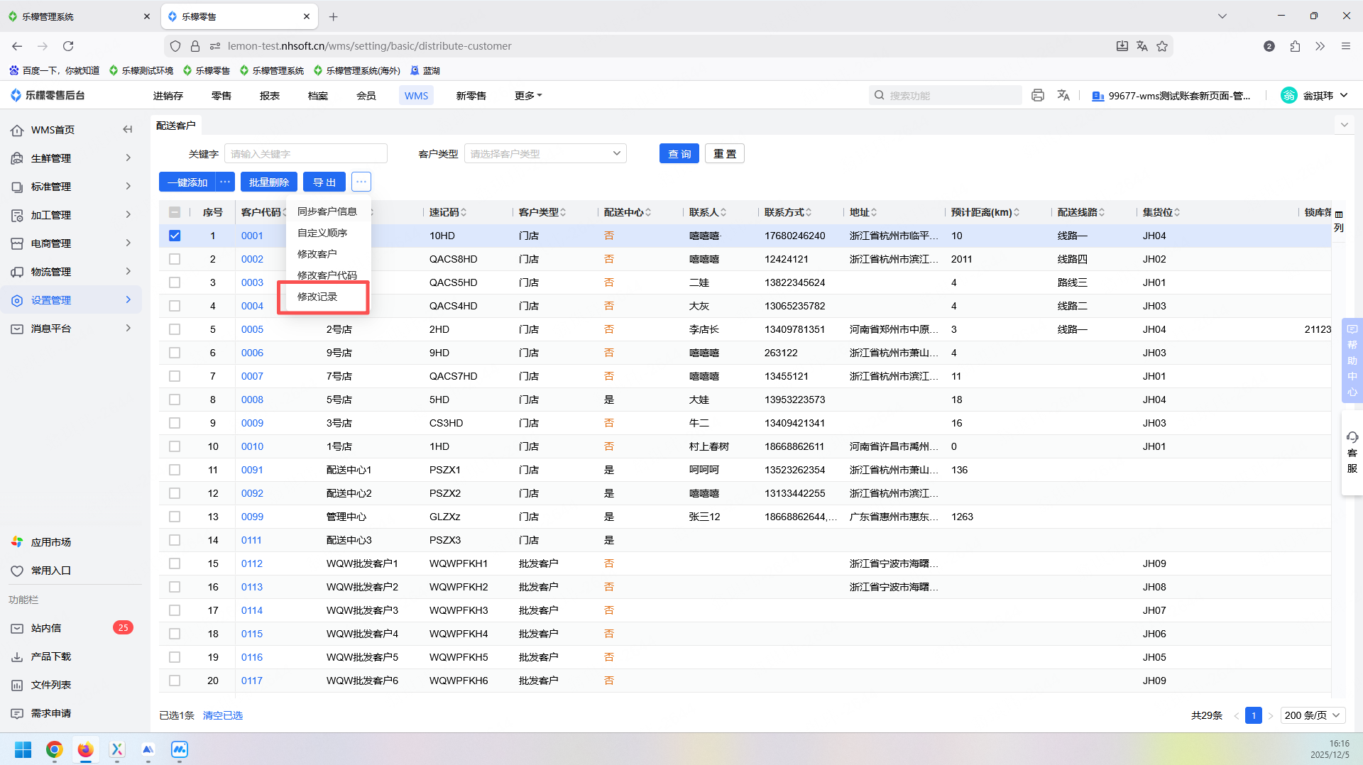 本次系统升级迭代,为方便系统问题排查,对“配送客户”功能进行优化,主要功能包括:1、增加“修改记录”;