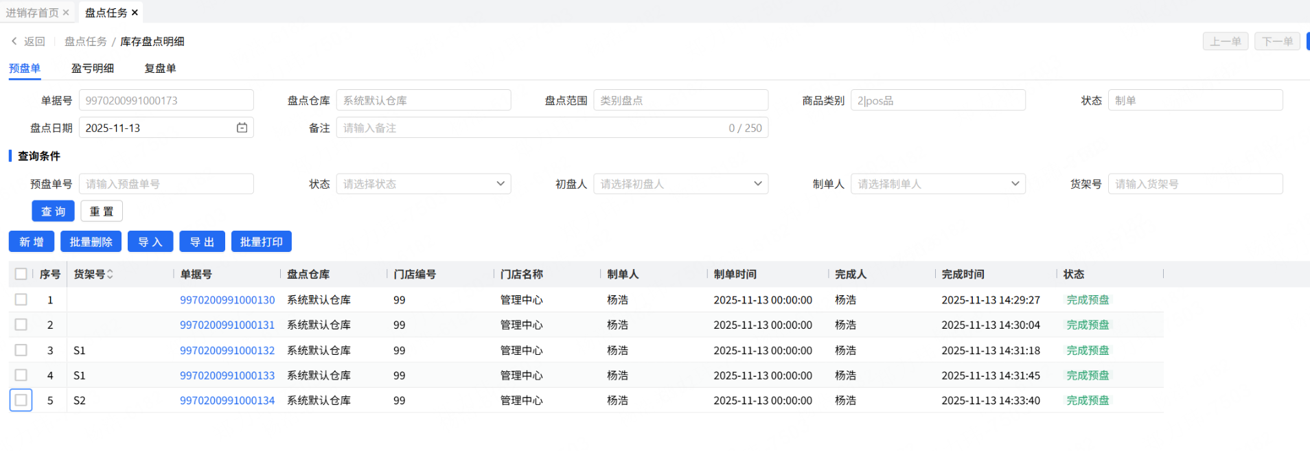注意:生成的复盘单,明细界面初盘数量需要做累加