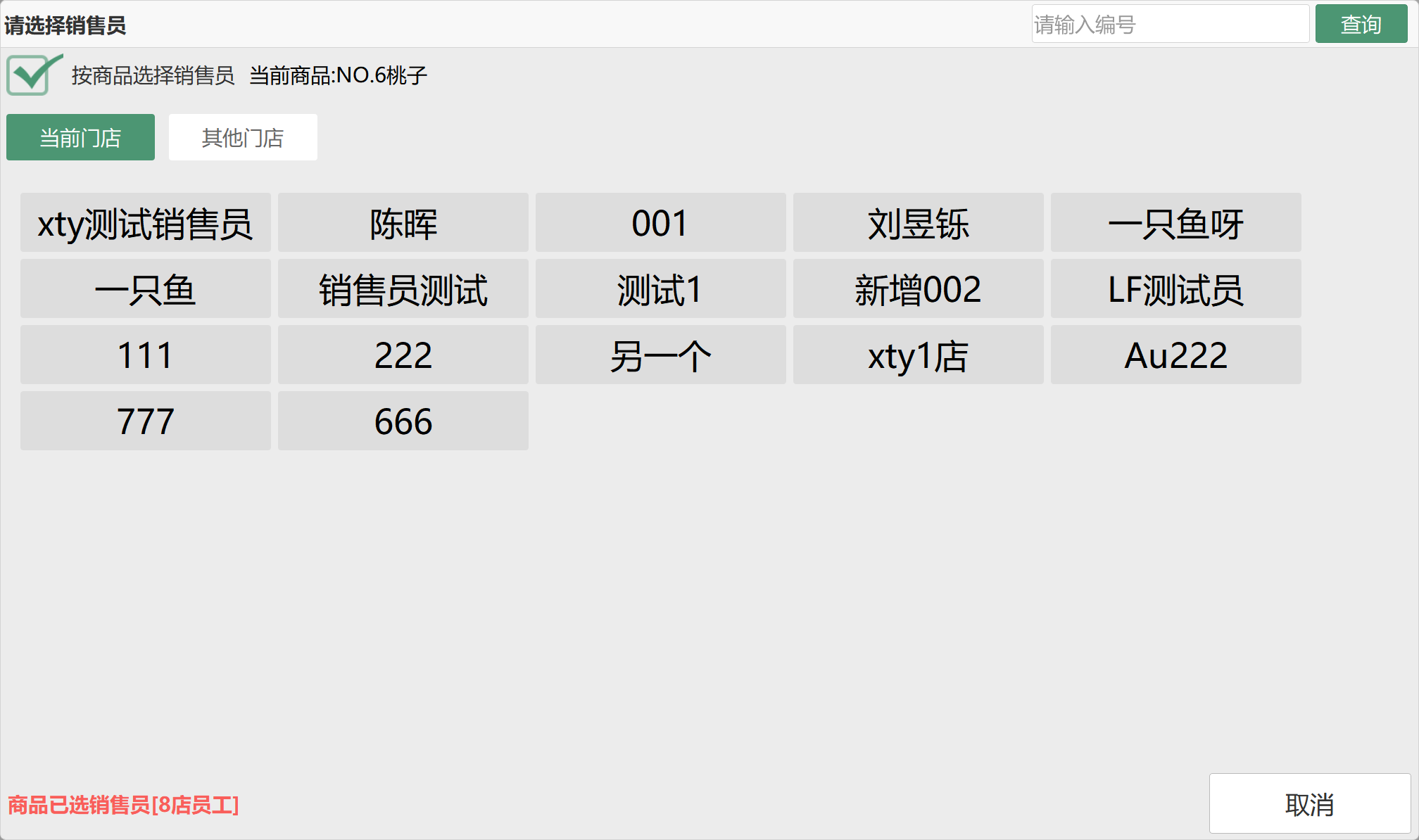 弹窗选择销售员不再标记当前整单,而是当前选中商品