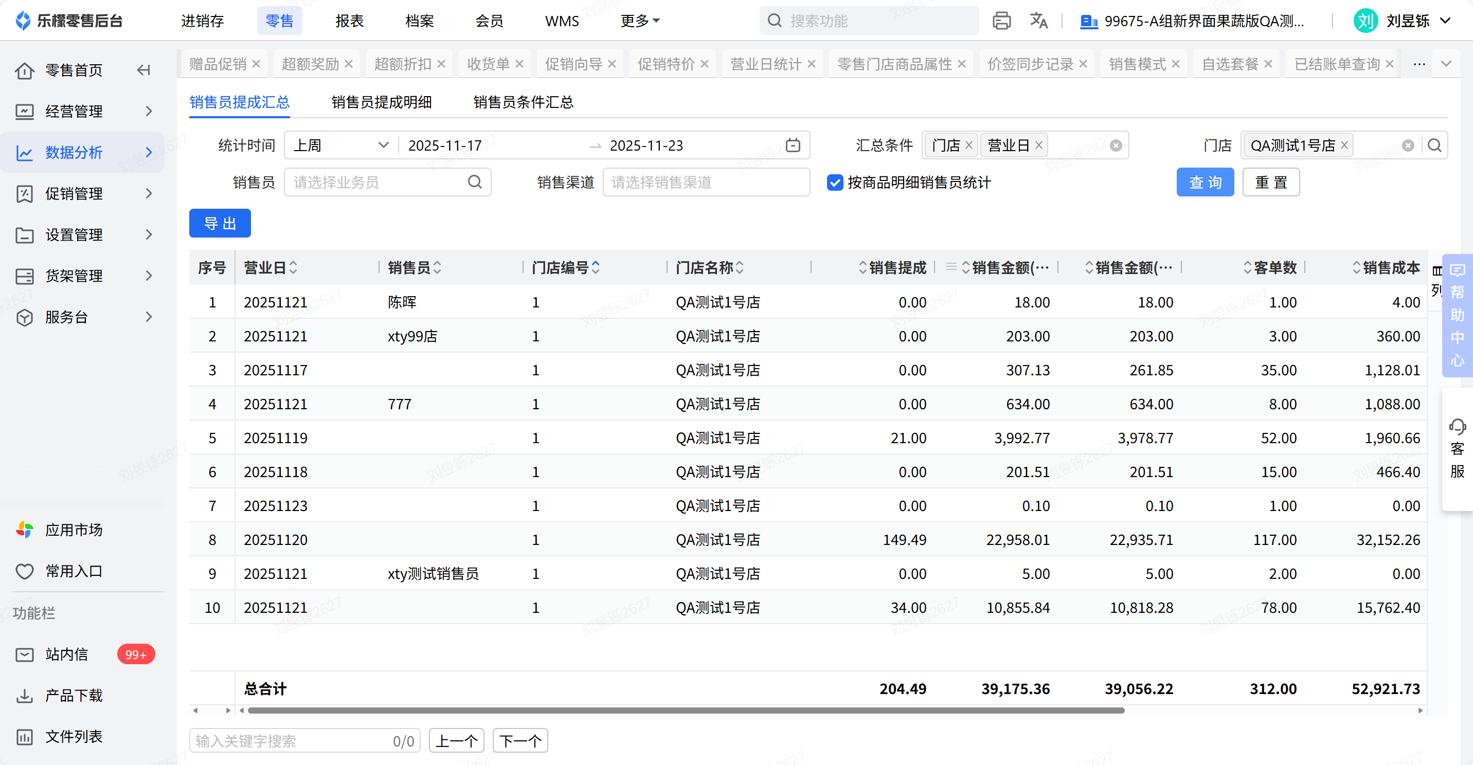原逻辑是汇总tab提成金额和销售员都取主单;明细tab提成金额取明细,销售员取明细对应主单的销售员