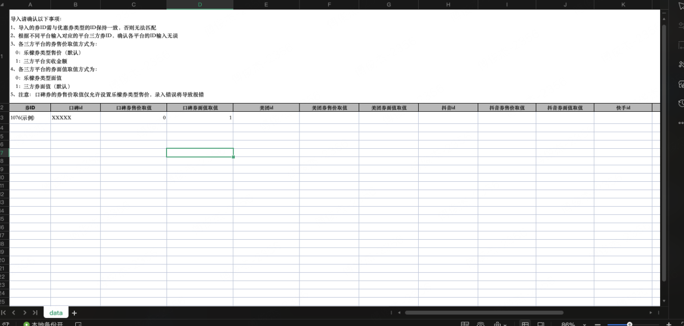 客户反馈在三方平台创建的团购券数量较多,手动录入各优惠券的三方平台id比较费时费力,希望能够快速导入