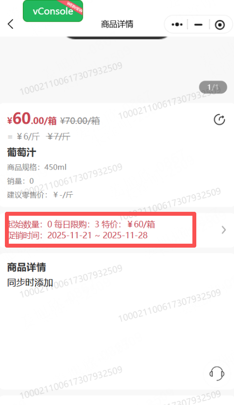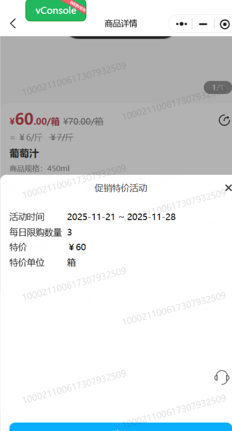 2、设置每日限购数量后,促销特价说明更新:增加每日限购字段,限购数量改为总限购数