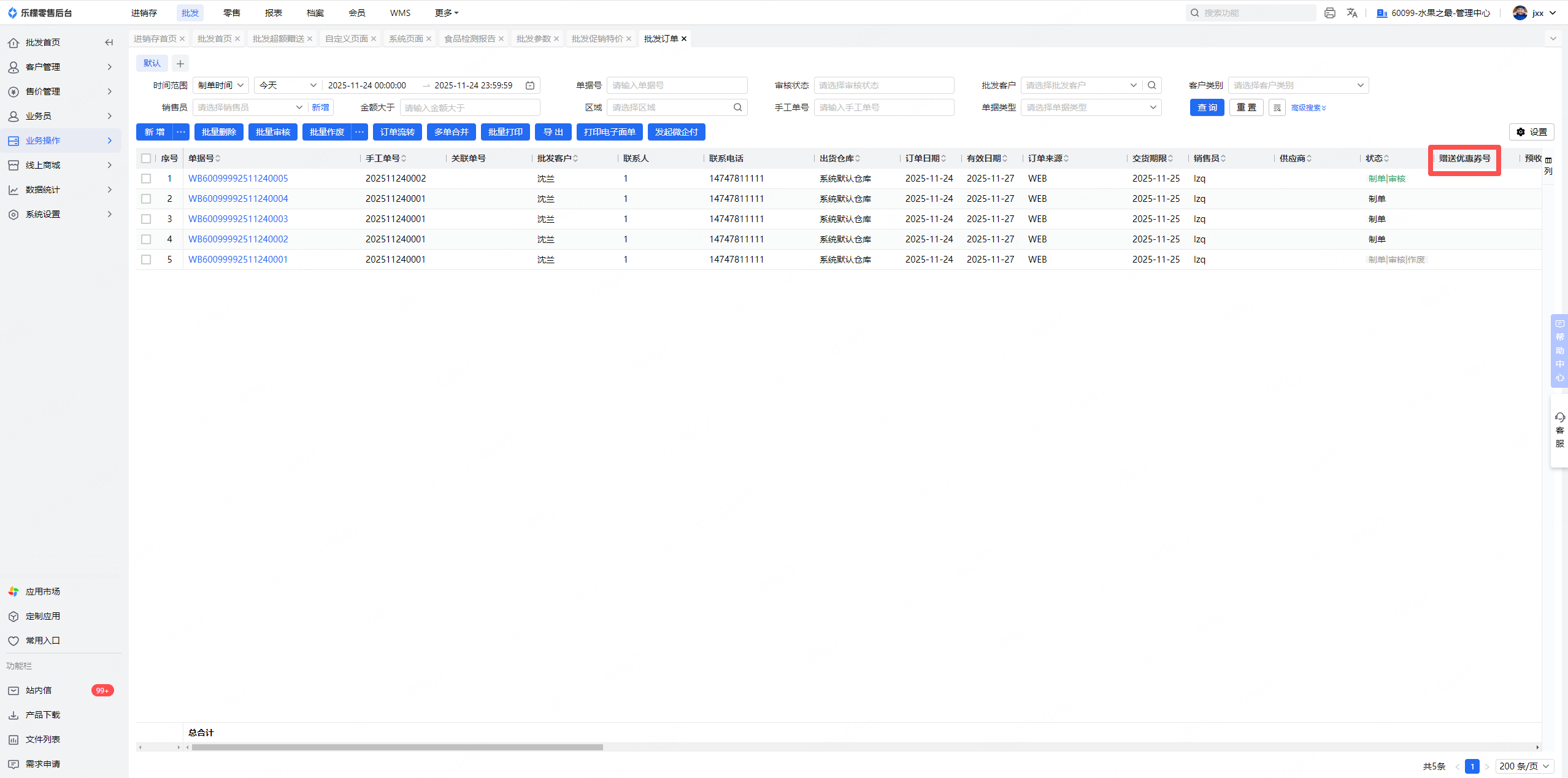 若批发订单合并,赠送的券不作废,券关联到合并后的批发订单里