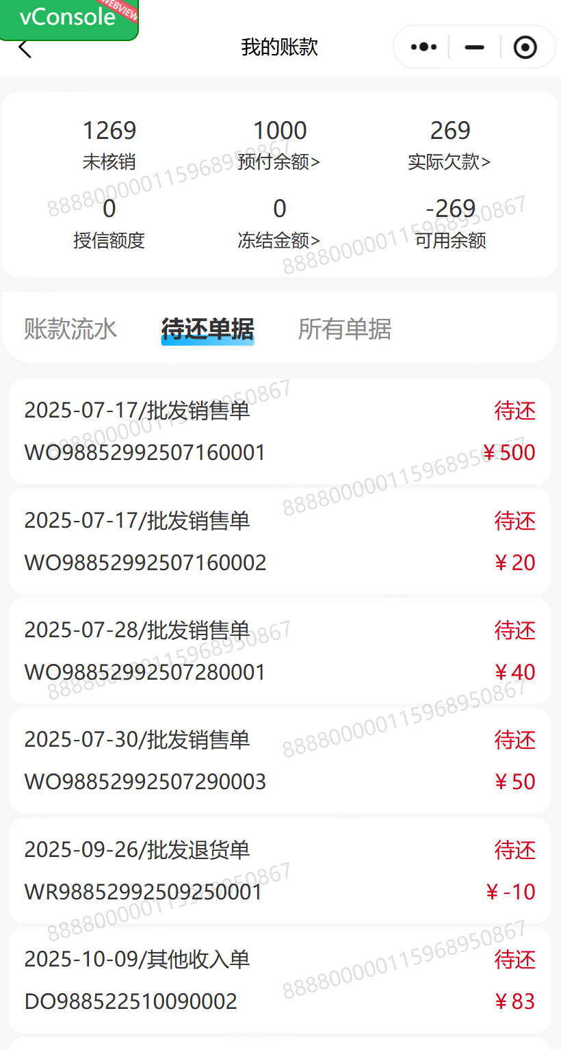 功能路径:小程序-我的-账户余额-我的账款