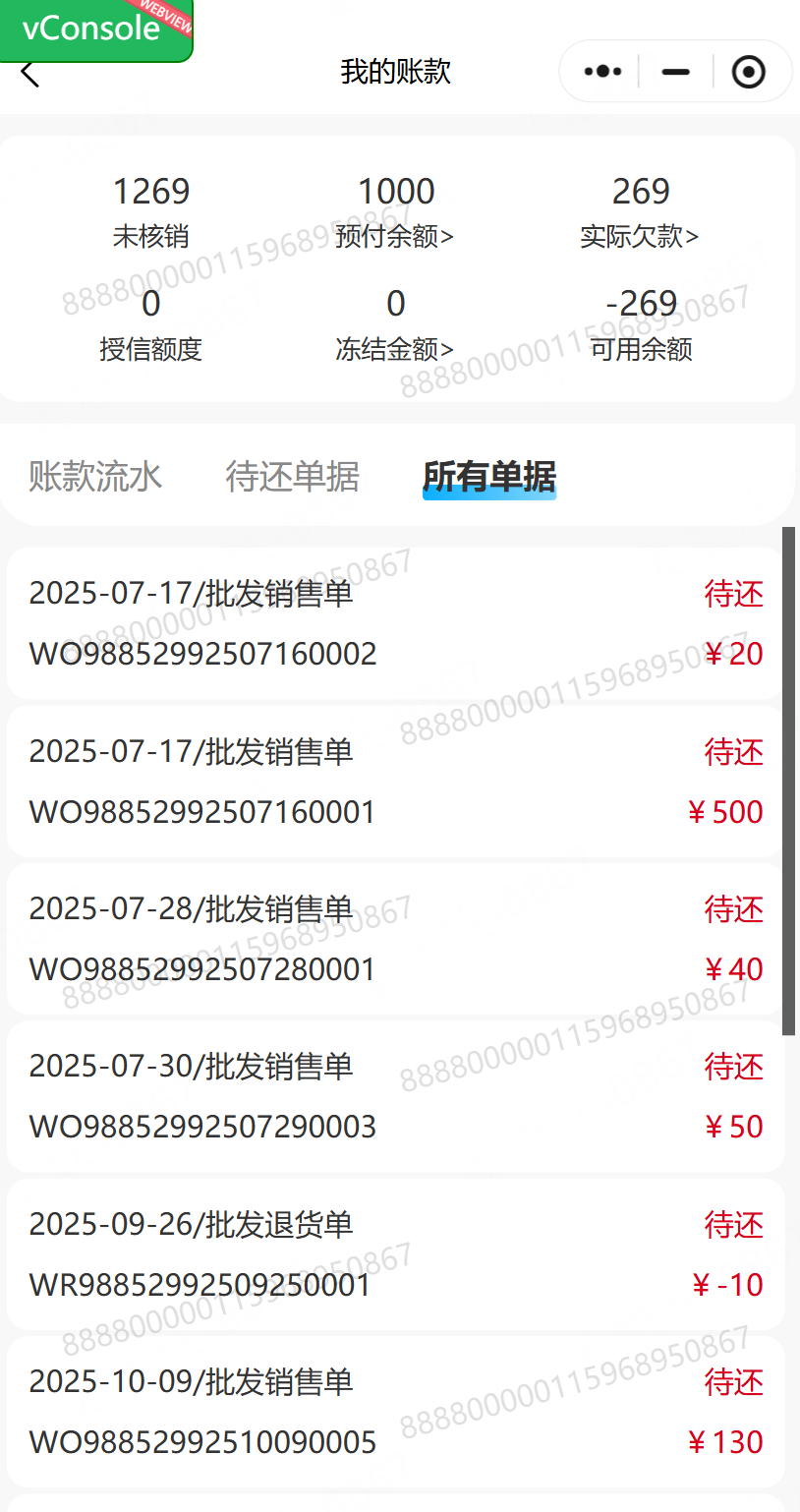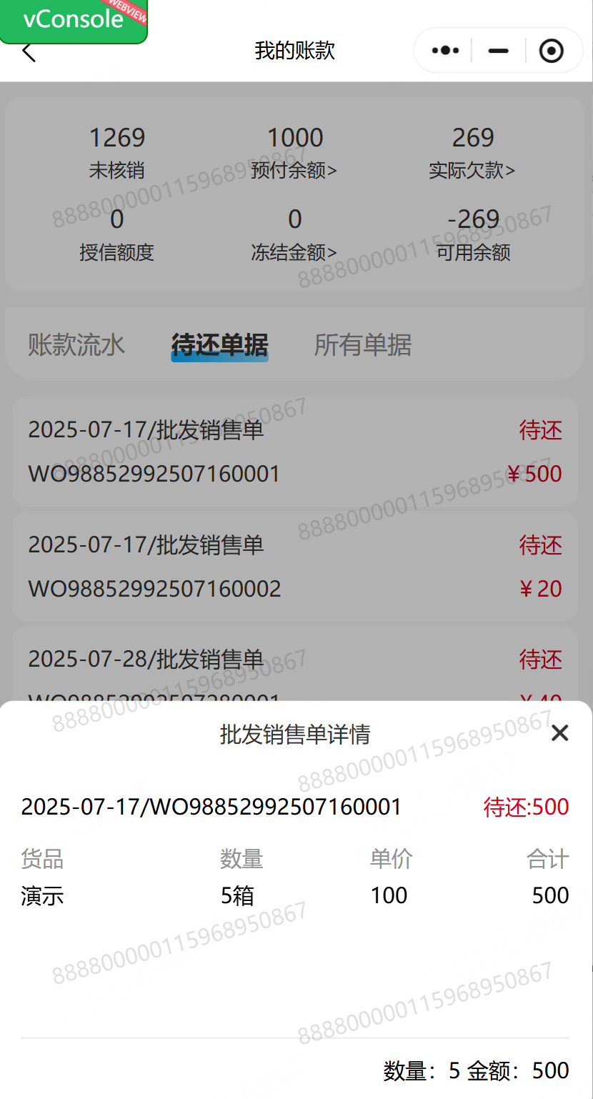 乐檬商贸 - 小程序客户账单显示优化