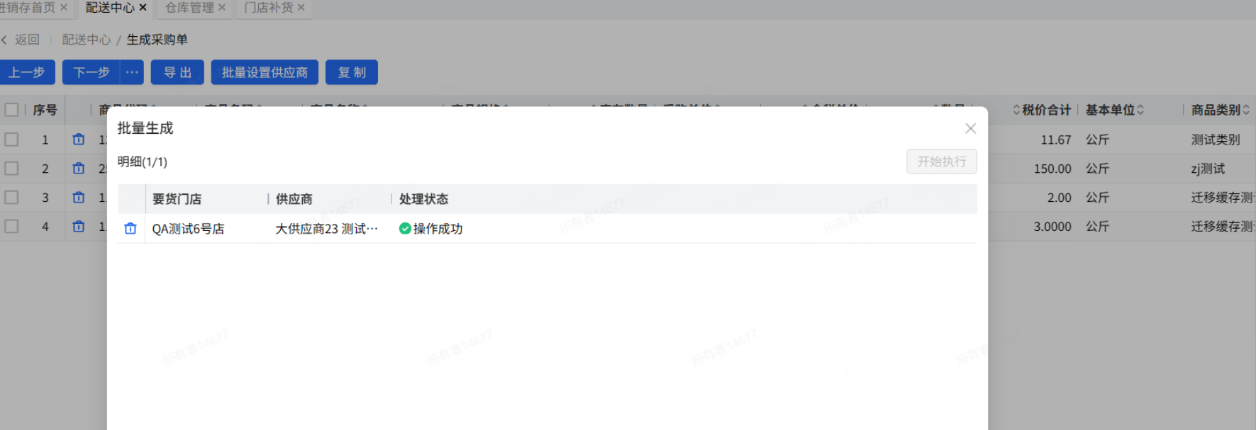 开放未启用配送仓库支持生成“生成采购订单”按钮下所以可生成单据