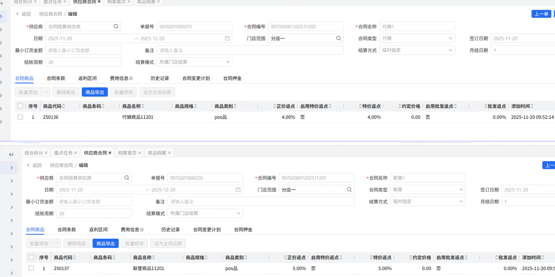 供货关系代销商品:商品在盘点门店下供货关系中存在代销供货关系