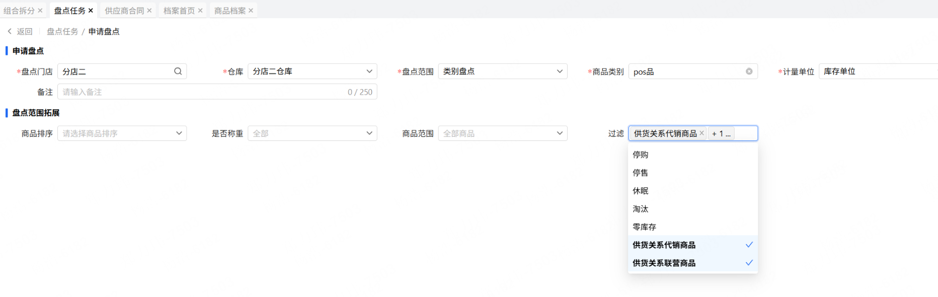 乐檬进销存 - 盘点任务过滤增加“供货关系代销商品”