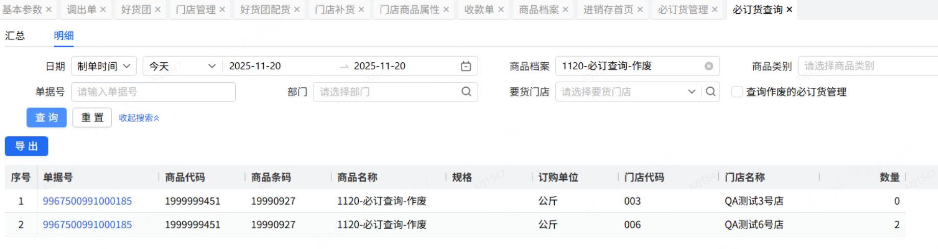 必订货管理活动作废后必定货查询直接不显示了,必定货查询已有数据还是要显示