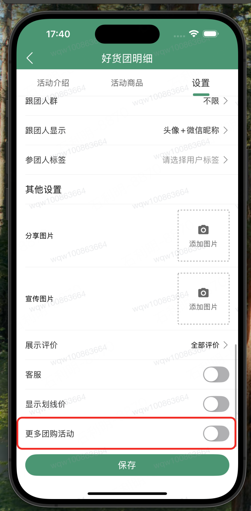 Web端&APP端:增加更多团购活动设置项,默认关闭,可开启