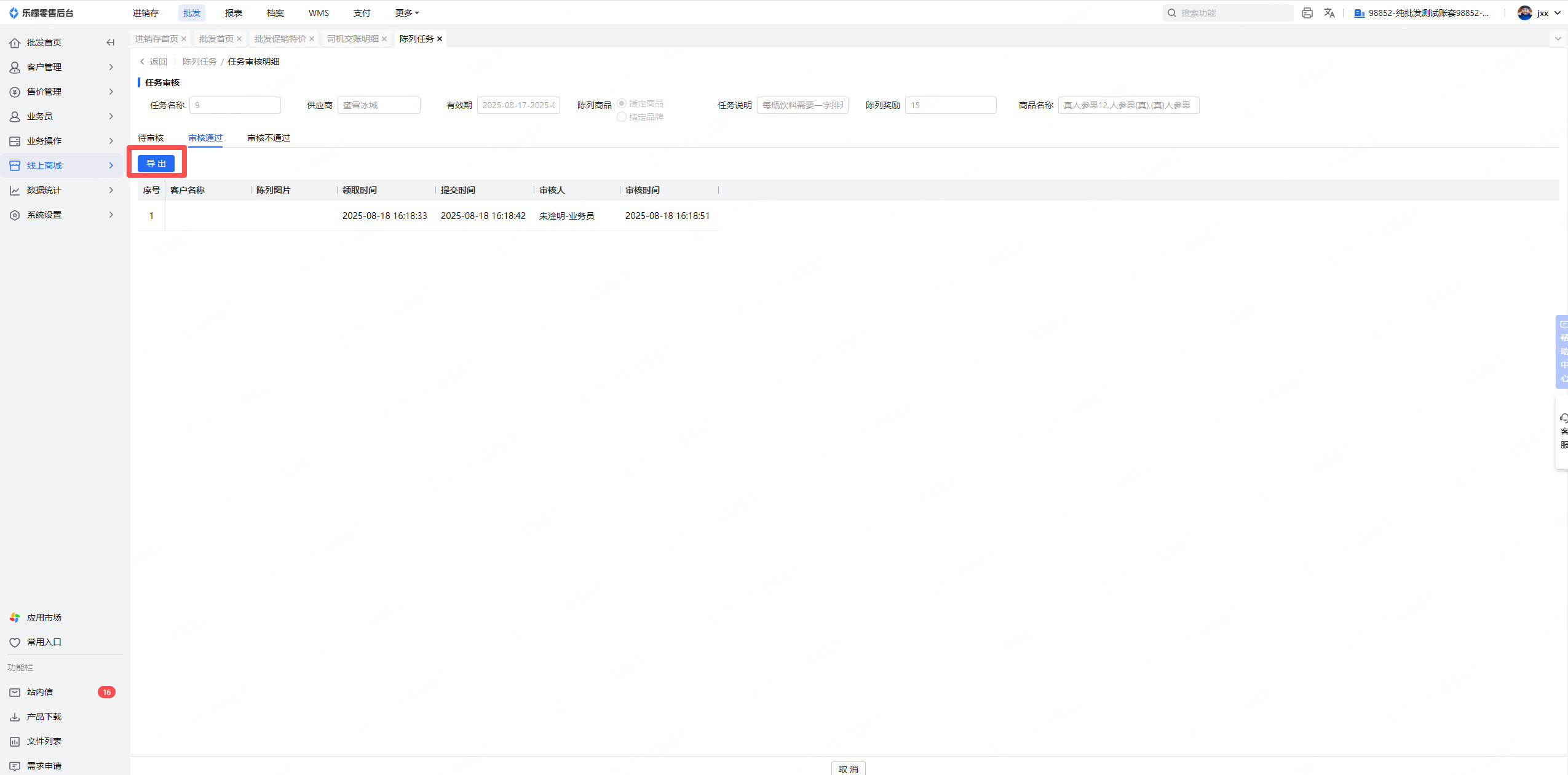 3、陈列任务已审核详情新增一个按钮“导出”,支持导出已审核的列表包括图片