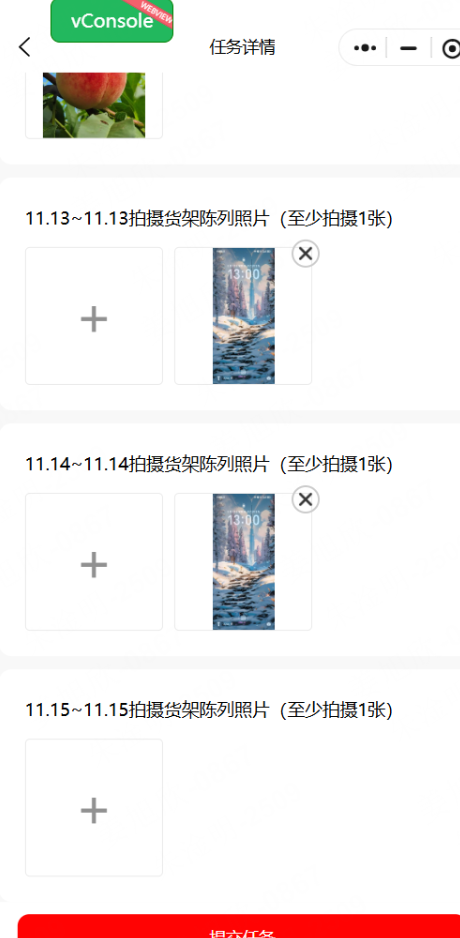 2、后台设置上传图片次数后,陈列任务上传图片的入口随之变化,有几次就有几个入口,到上传时间时才允许上传