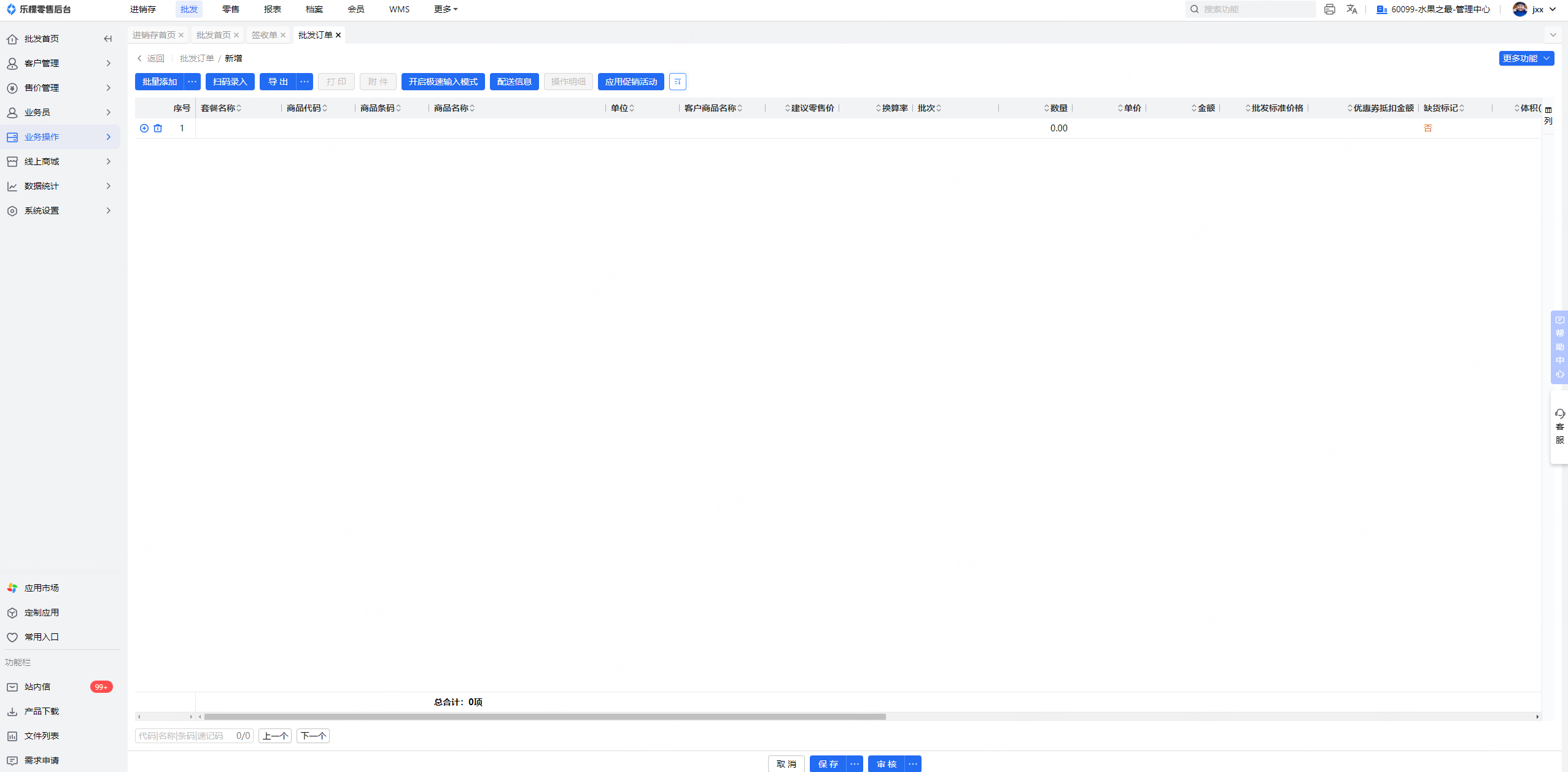 功能路径:web-批发-业务操作-批发订单、批发销售单、批发退货单、售后申请、销售开单