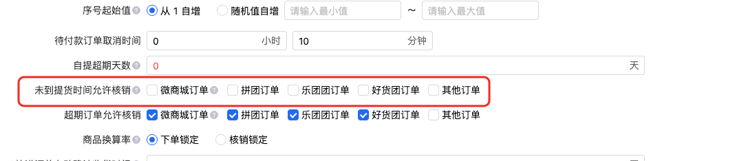 通用设置增加未到提货时间允许核销的参数,开启后对应订单未到提货时间允许在APP端和POS端提前核销。
