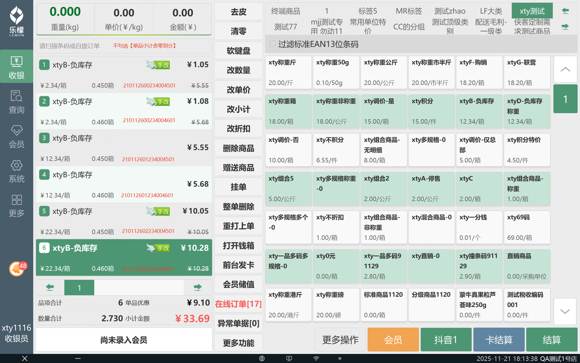 前台商品扫码时兼容上述新类型,当识别到条码秤标签条码时,按PLU解析商品条码获取商品项目,按单价长度数值解析商品单价,若与当前门店商品价格不一致则记为手改,优惠金额记为经理折扣,按重量长度解析商品数量,随后进行单价*数量=金额从而推算出金额(注意应用单品小计参数与前台销售四舍五入规则)