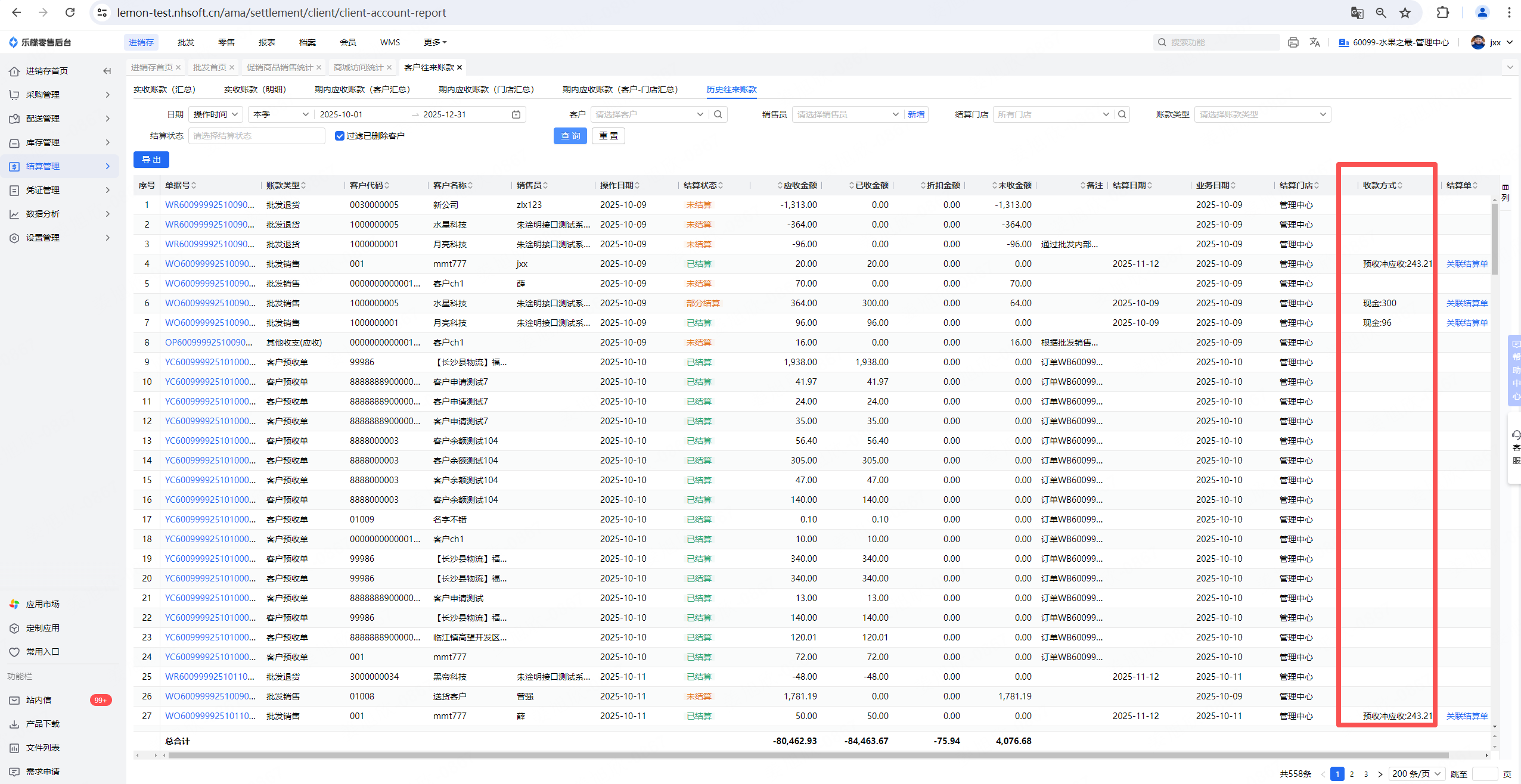 乐檬商贸 - 客户历史账款增加“收款方式”列