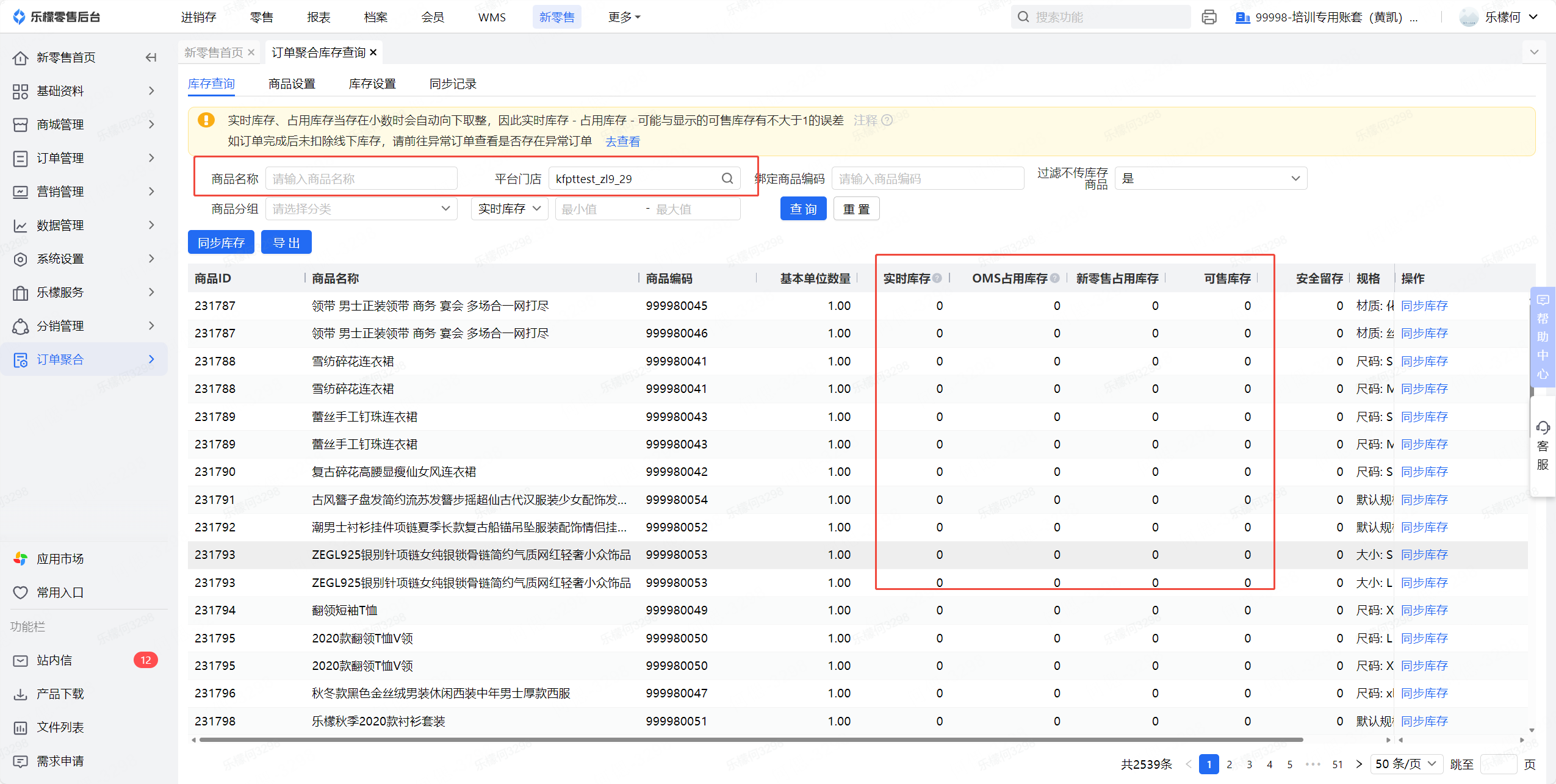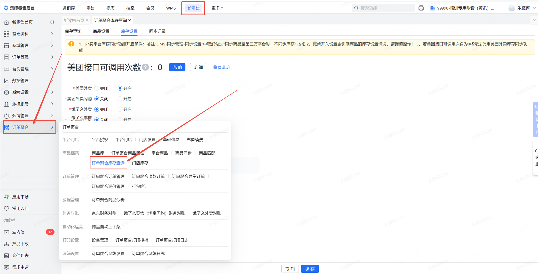 👉【操作路径】:新零售-订单聚合-订单聚合库存查询-商品匹配