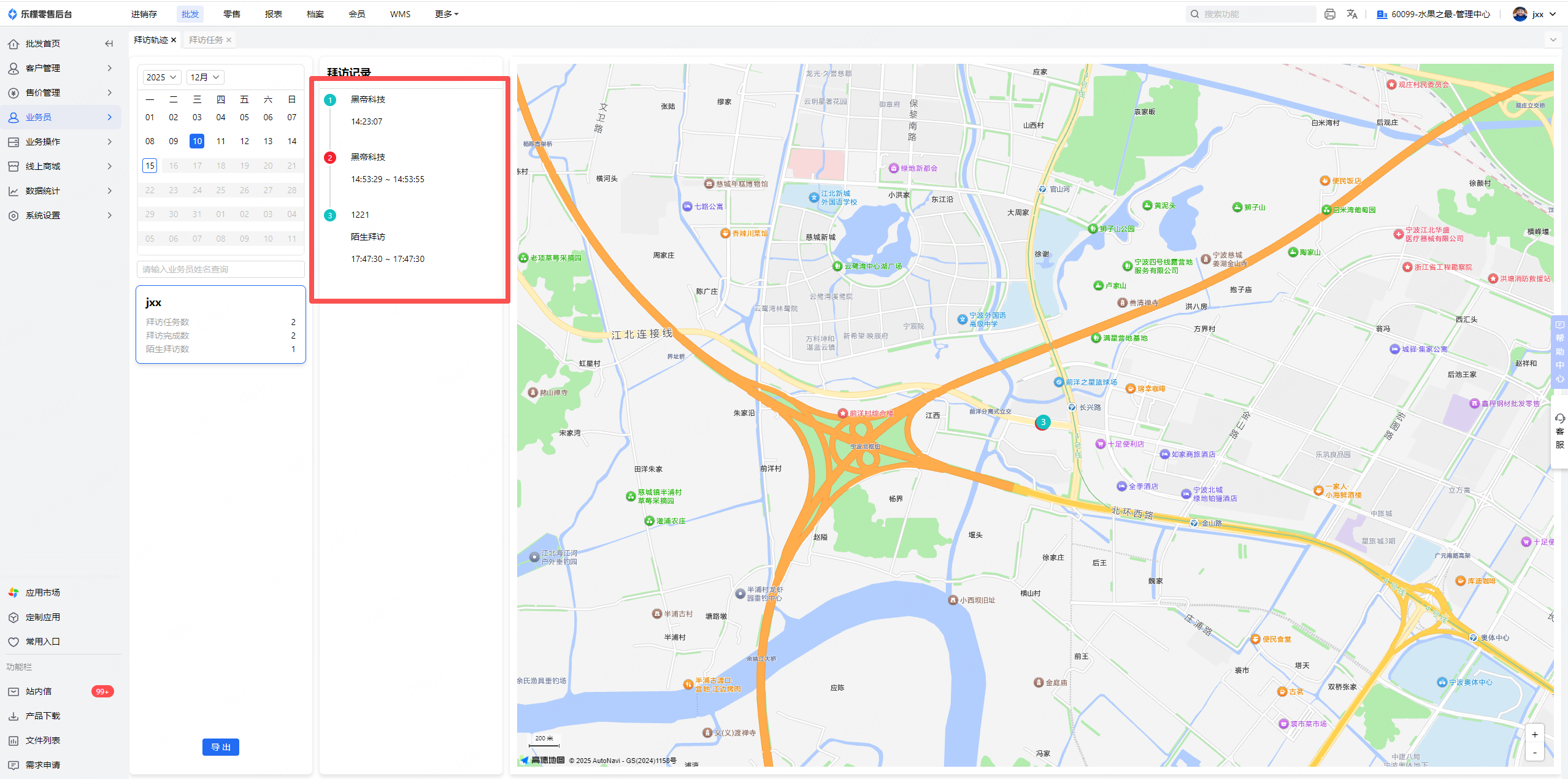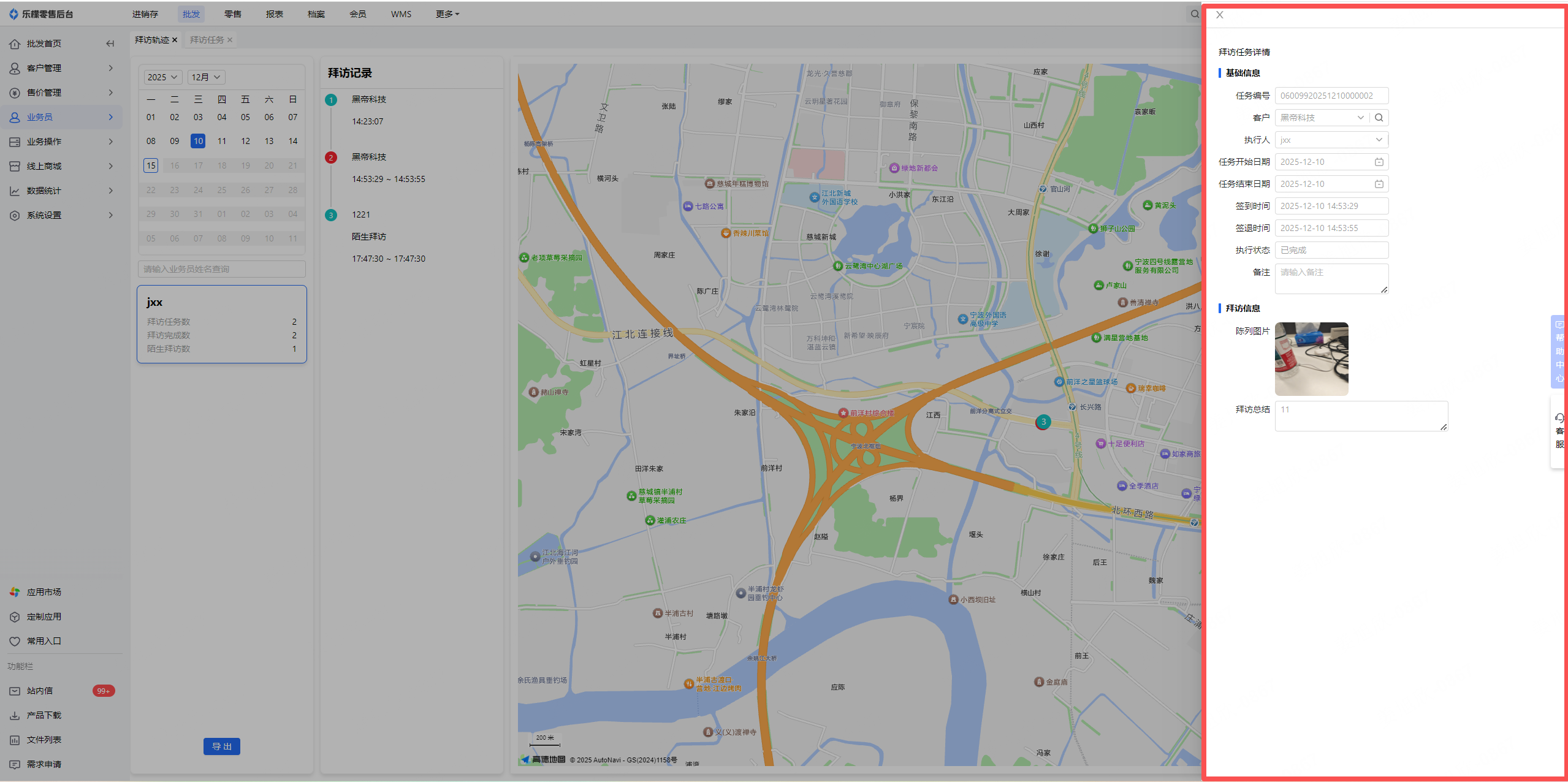 3、拜访轨迹-业务员拜访详情:需要记录业务员的签到时间、签退时间和定位;只有签到则展示签到定位,签到和签退都有则展示签退的定位