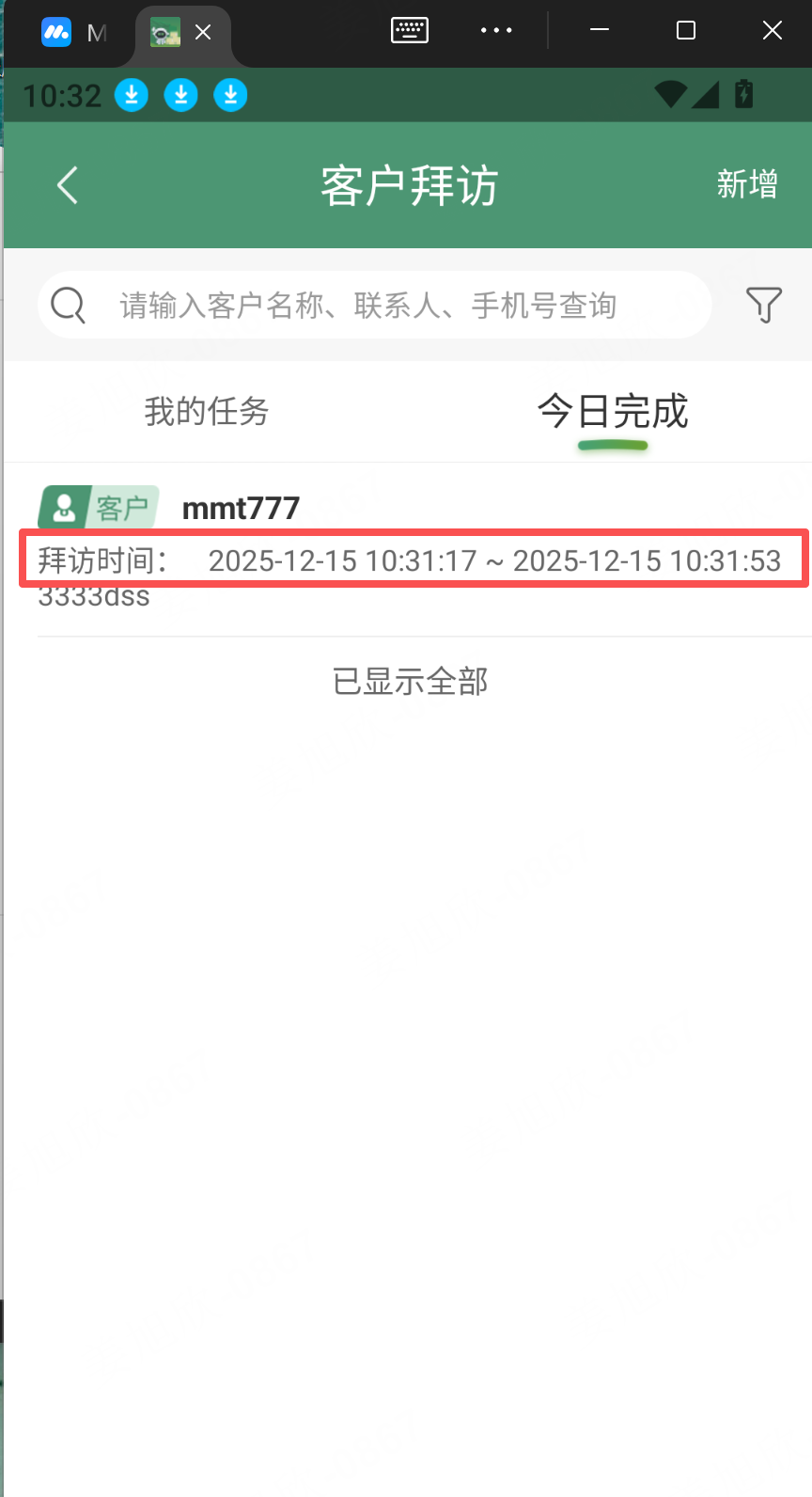 拜访任务已签到未签退:拜访记录展示拜访客户名称+签到时间;