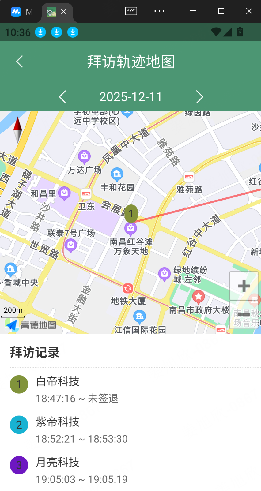 4、拜访轨迹需记录签到和签退定位,只有签到则展示签到定位,签到和签退都有则展示签退的定位