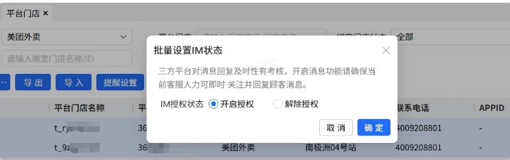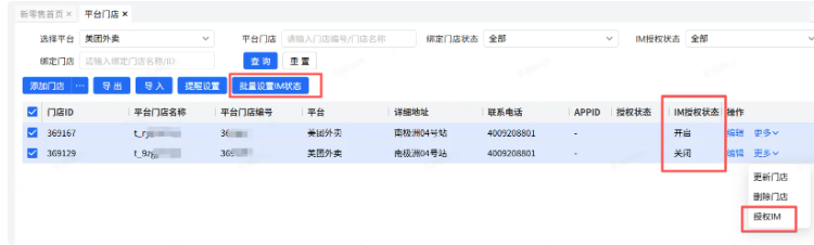·可为门店授权或取消授权门店的IM状态。