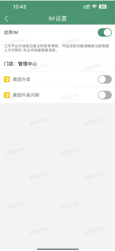 ·门店可根据情况自行决定是否开启IM,可支持设置接收哪个平台的聊天信息。