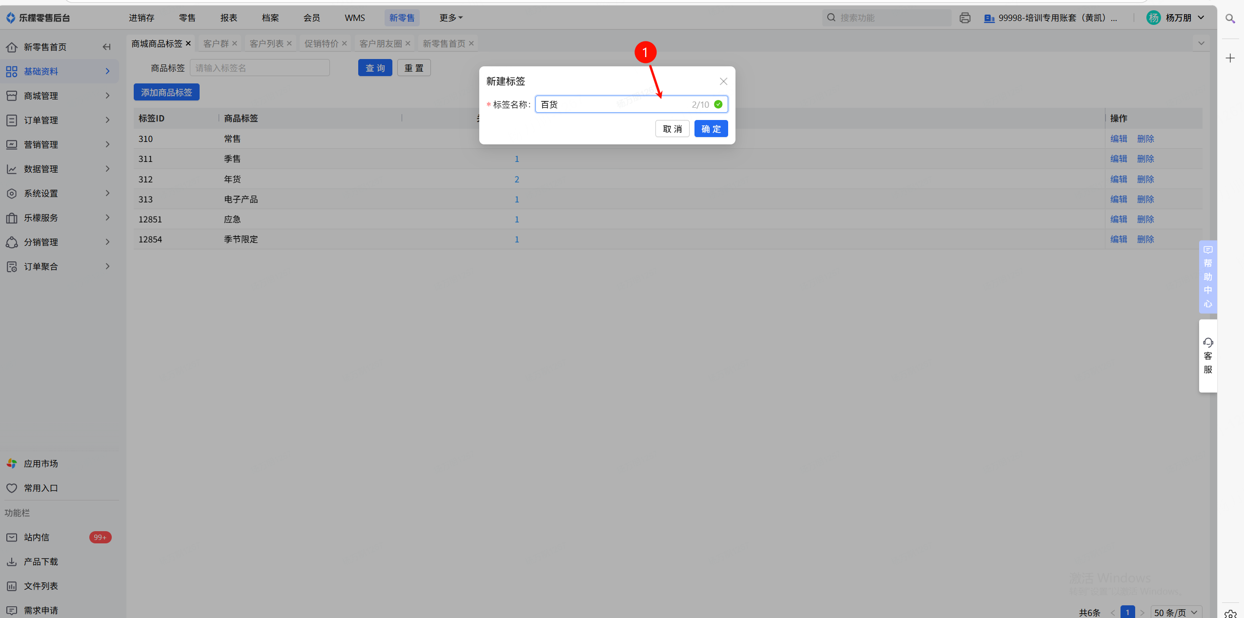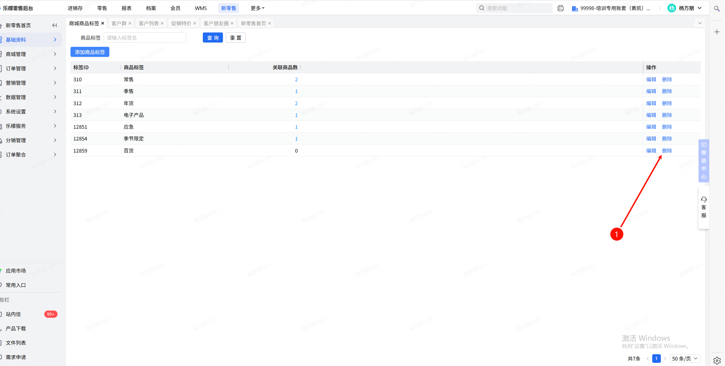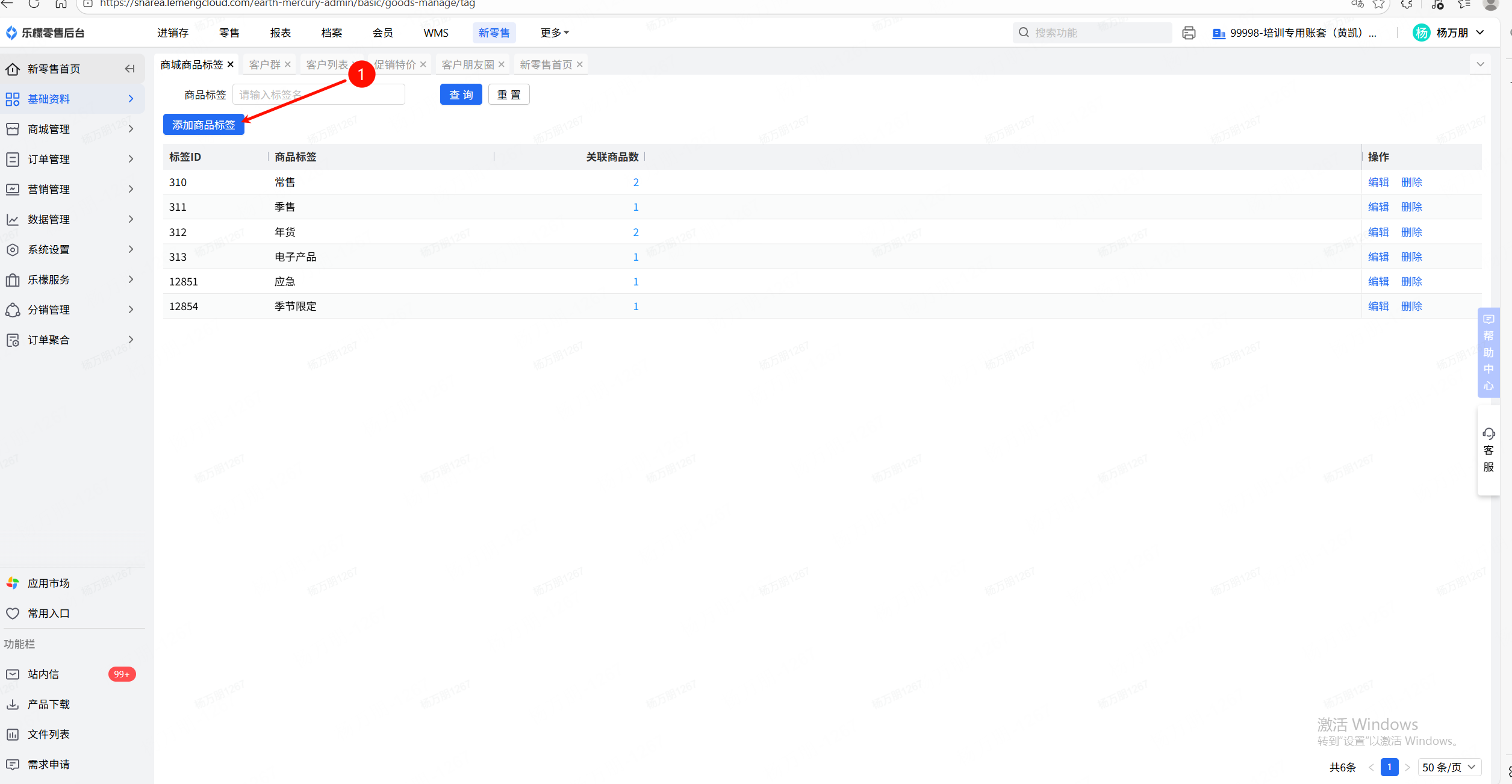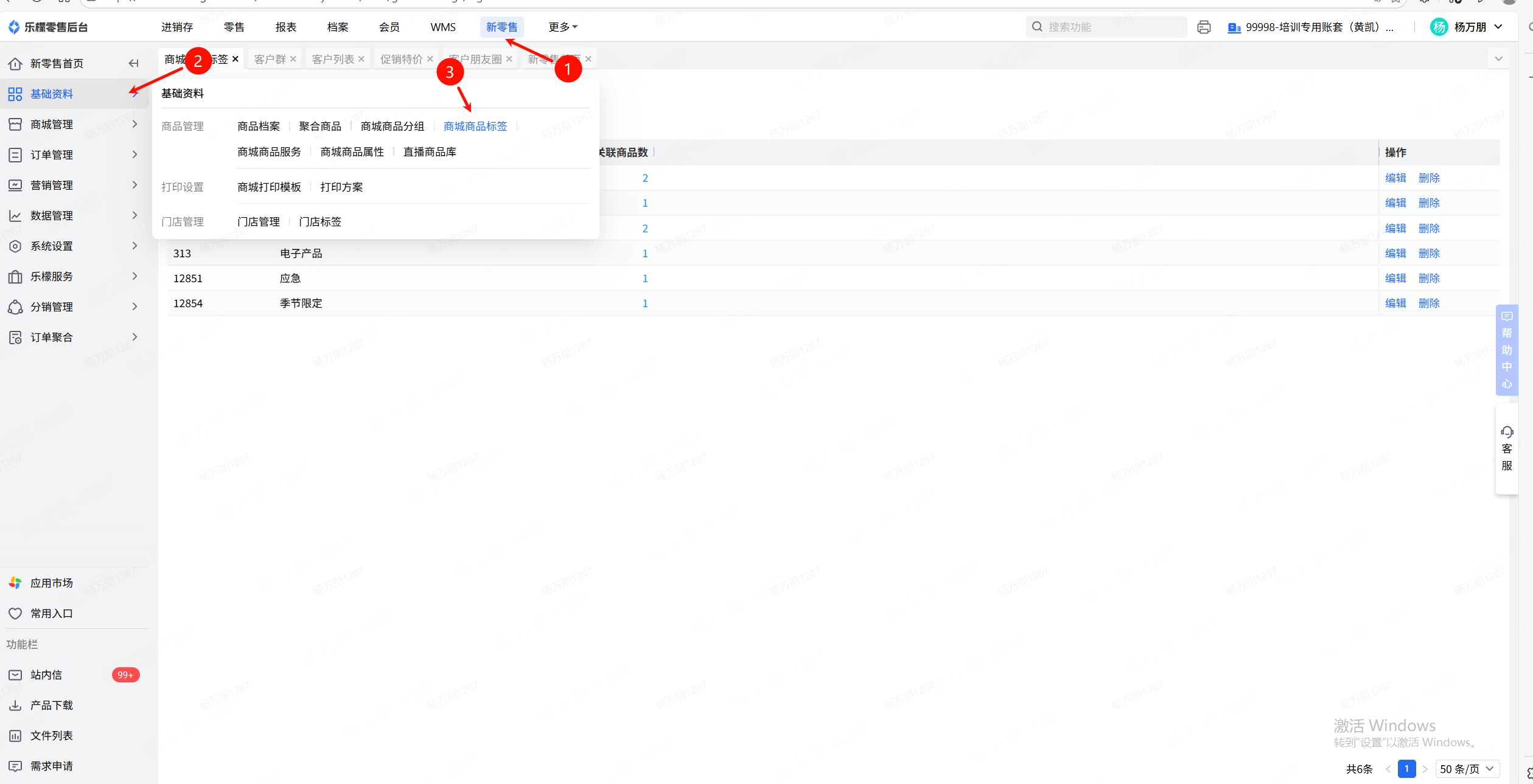 👉【操作路径】:1.登录后台进入新零售 - 2.点击基础资料,商城商品标签