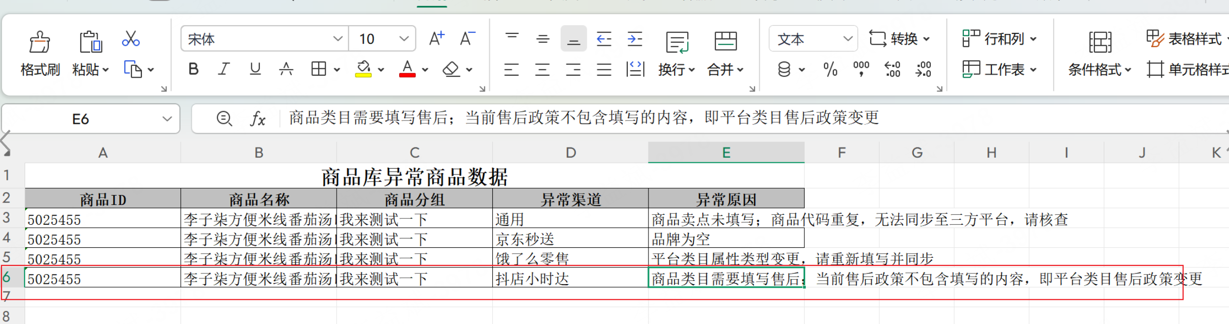 一键导出渠道异常商品支持将抖音售后信息异常的商品查询出来,商家需重新修改售后政策