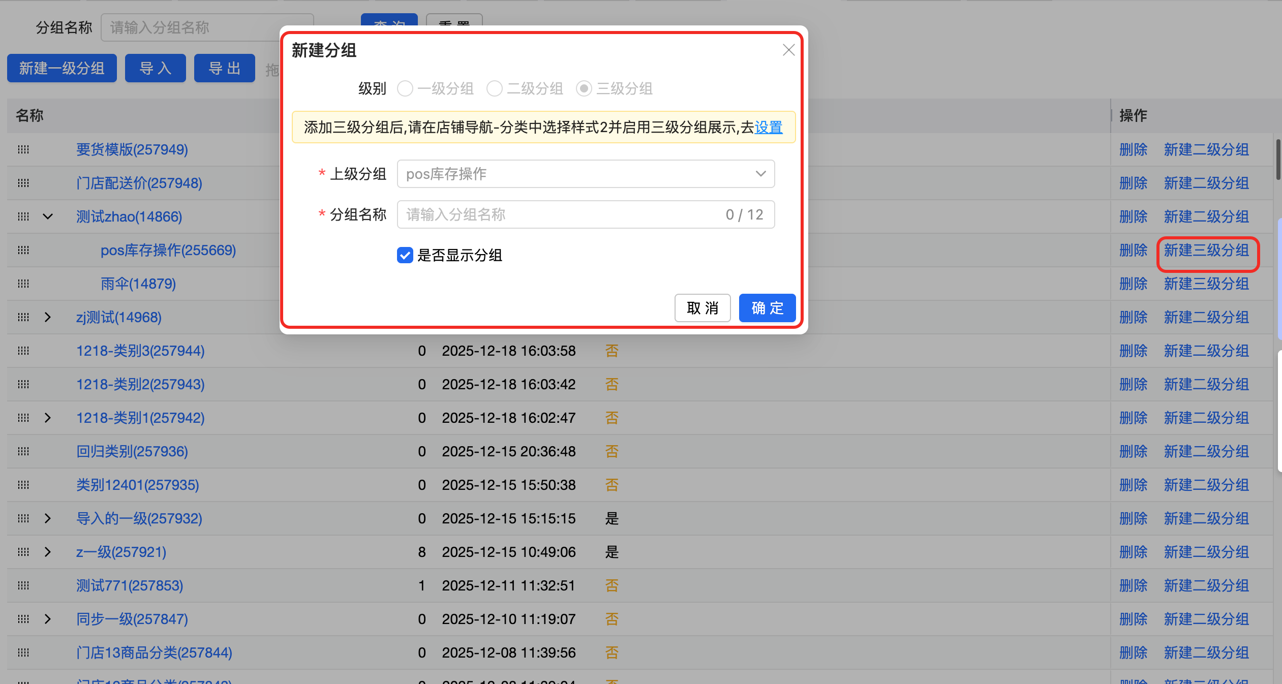 系统中所有展示/选择分组的地方,均支持选择三级分组(APP商品列表左侧分组栏例外,仅支持显示二级分组)