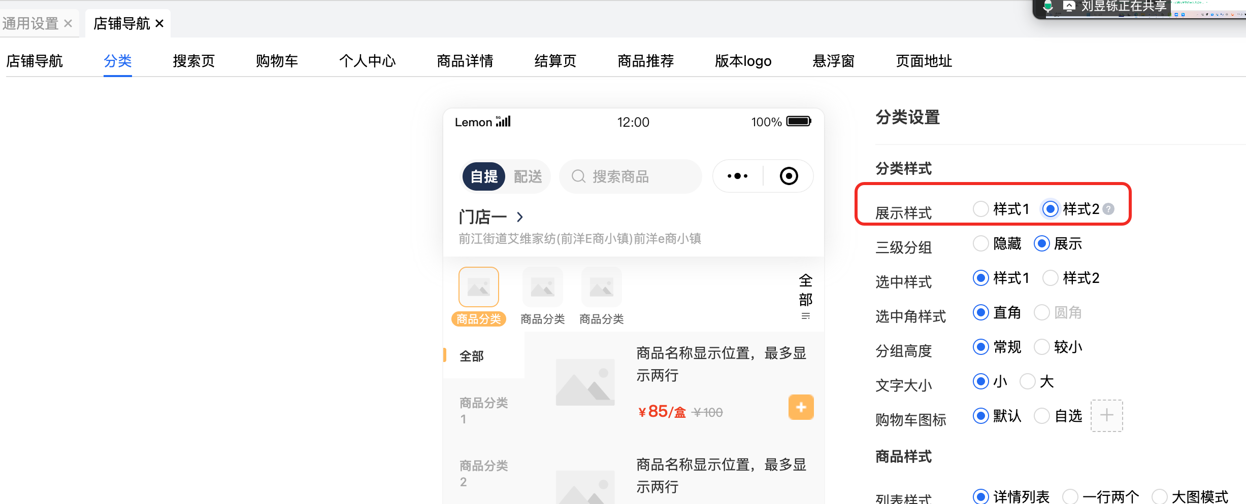 商城导航-分类设置中,样式需要设置为样式2,否则无法展示三级分组