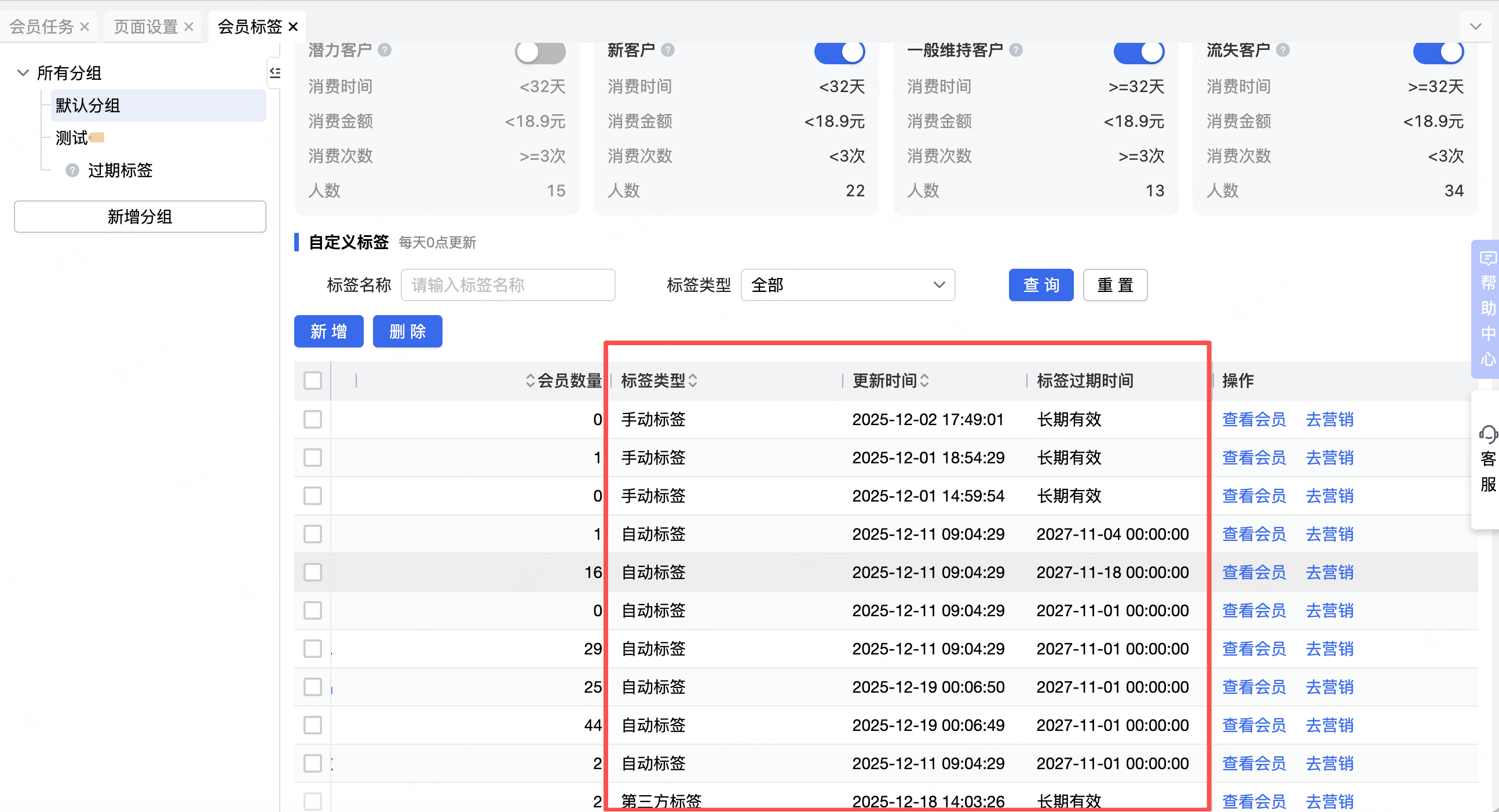 3、可通过会员标签的列表页面,查看标签的过期时间