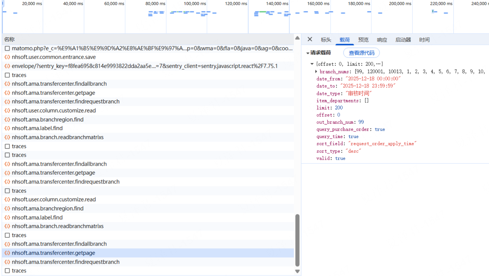 筛选条件“要货门店”=空时,按账套下所有启用的门店进行查询
