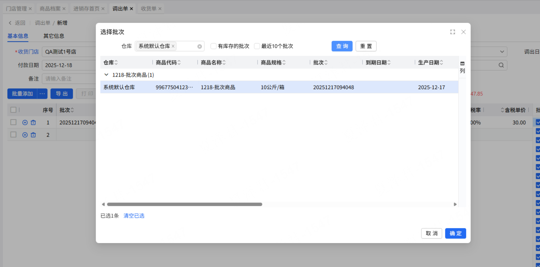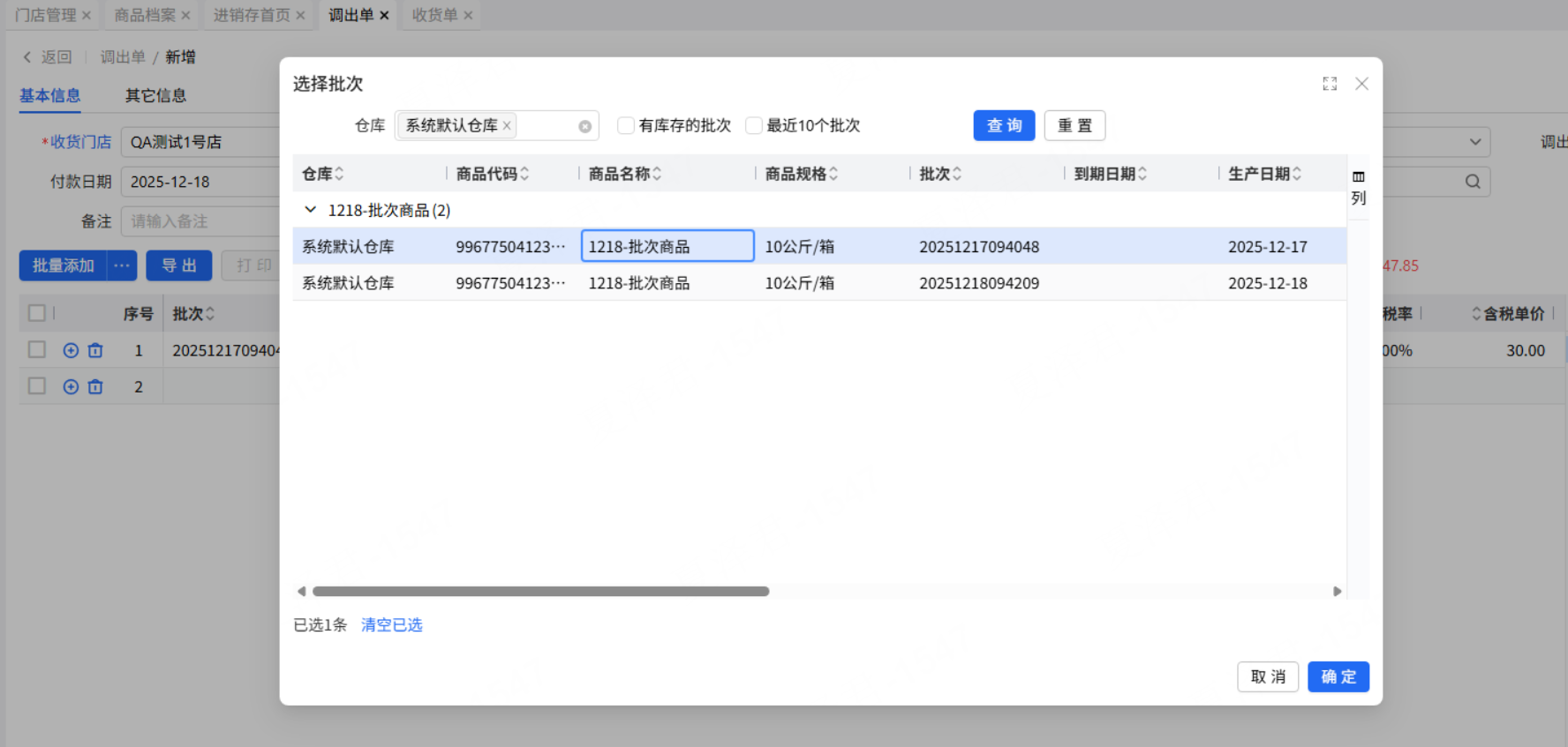 乐檬进销存 - 调出单仅有一个批次支持点击展示批次弹窗