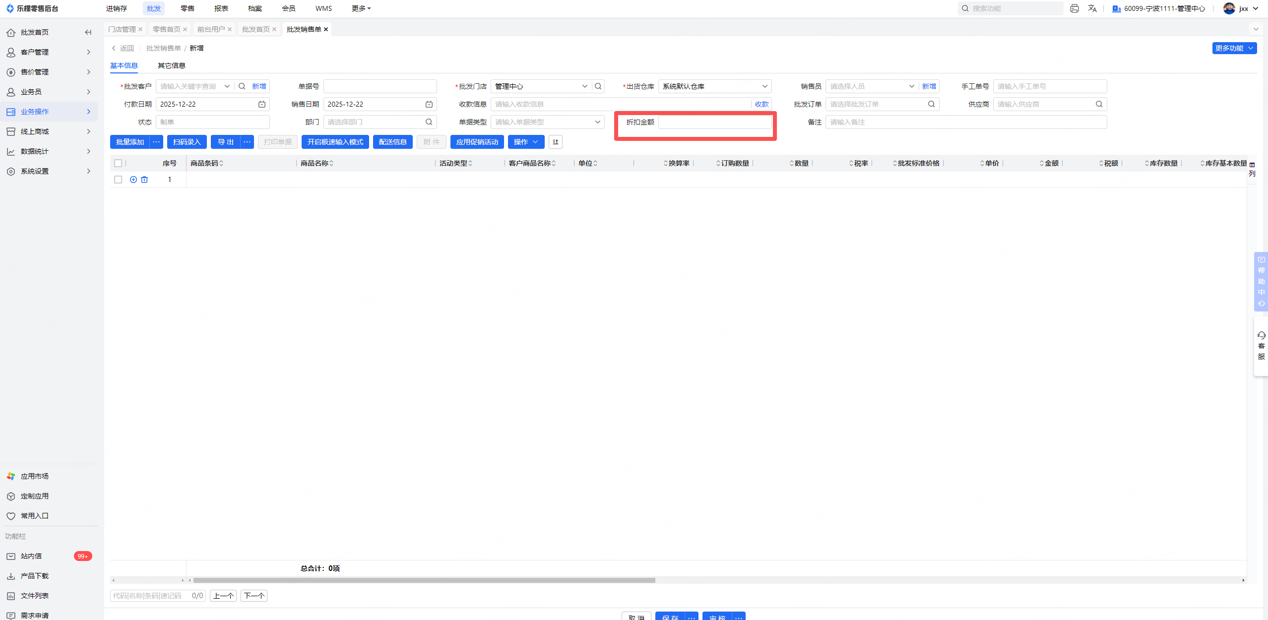 乐檬商贸 - 批发销售单支持直接录入优惠金额