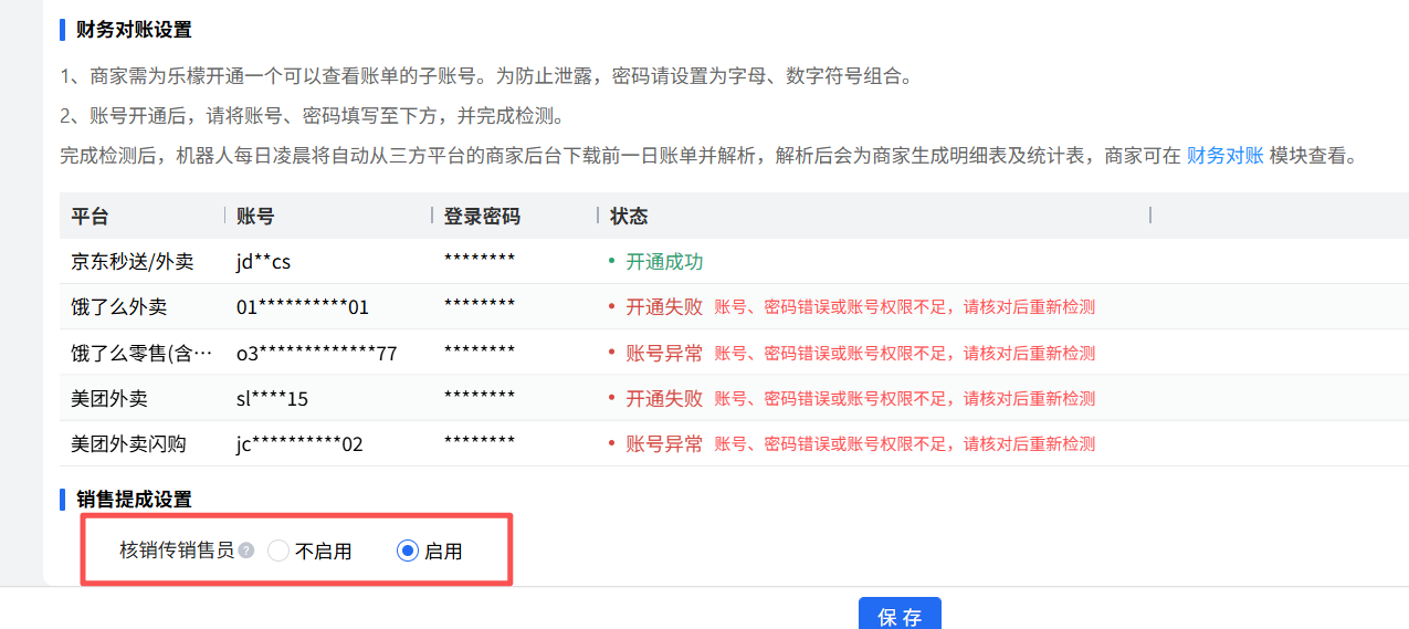 要点:三方平台订单支持统计销售员业绩,给销售员计算提成