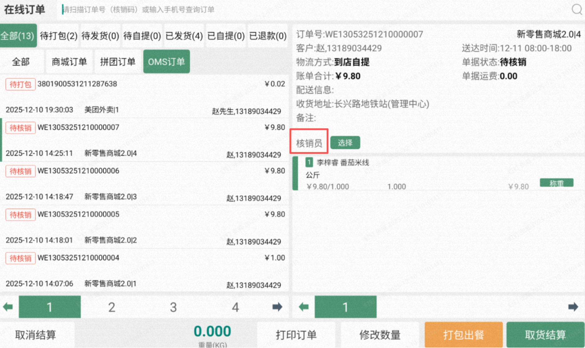 APP在核销订单时,会将操作“打包出餐”的用户记录为销售员。前提是后台选项启用,且该操作用户在后台设置为销售员。