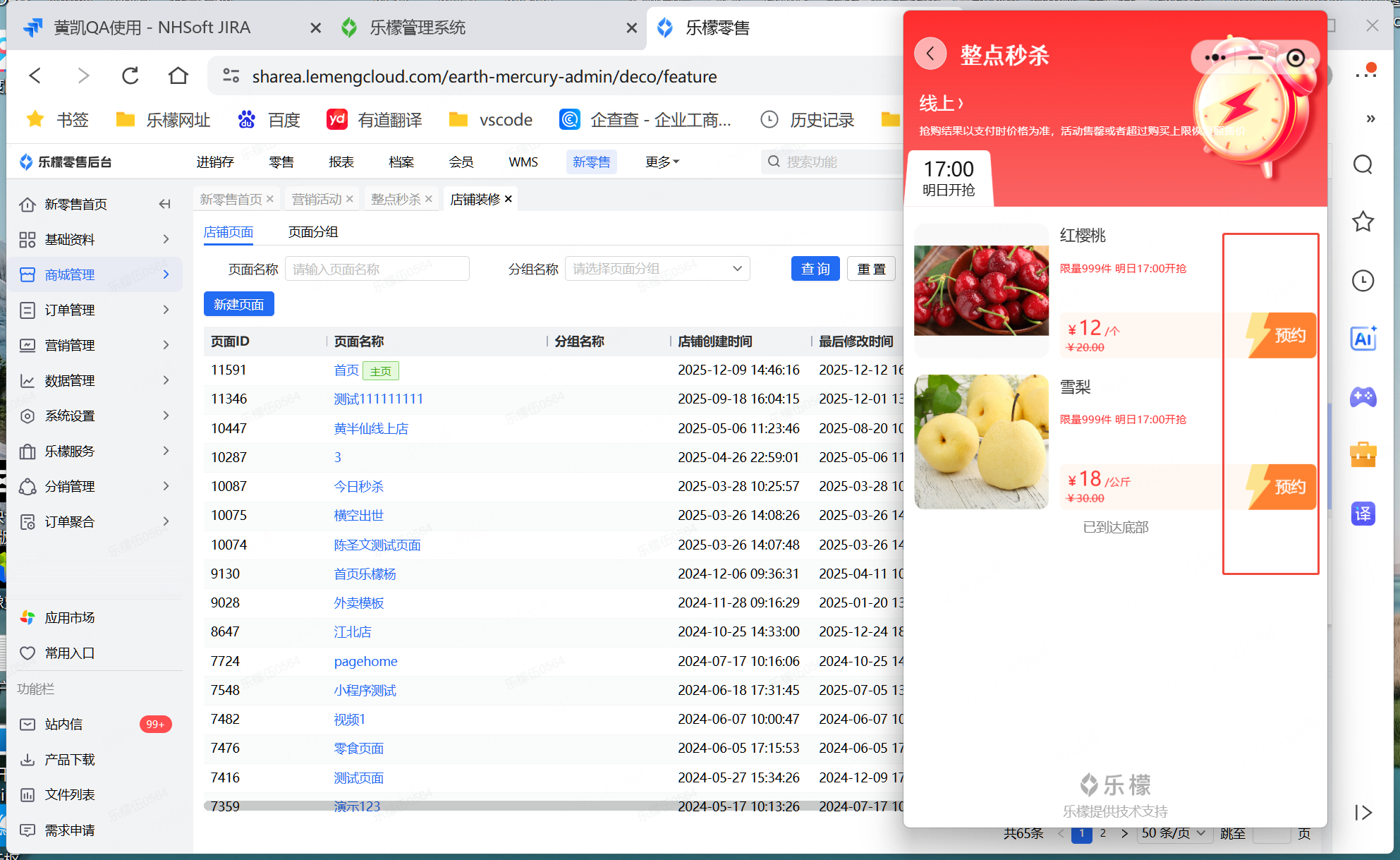 创建一个整点秒杀活动,秒杀商品为雪梨和红樱桃。在17点可以开始秒杀活动。活动时间设置为,12月9日到12月11日结束