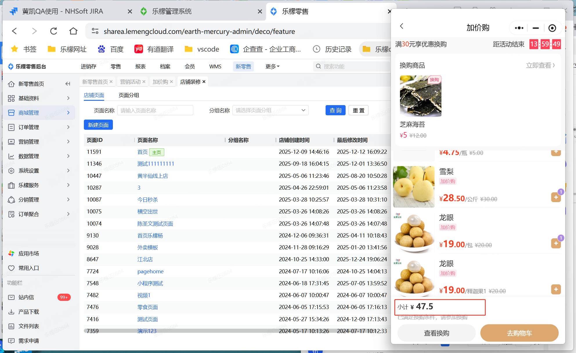 创建一个加价购活动,活动商品时间设置为,12月9日到12月10日结束。加购门槛设置为满30,可加购1件商品,换购商品为芝麻海苔,换购加5元