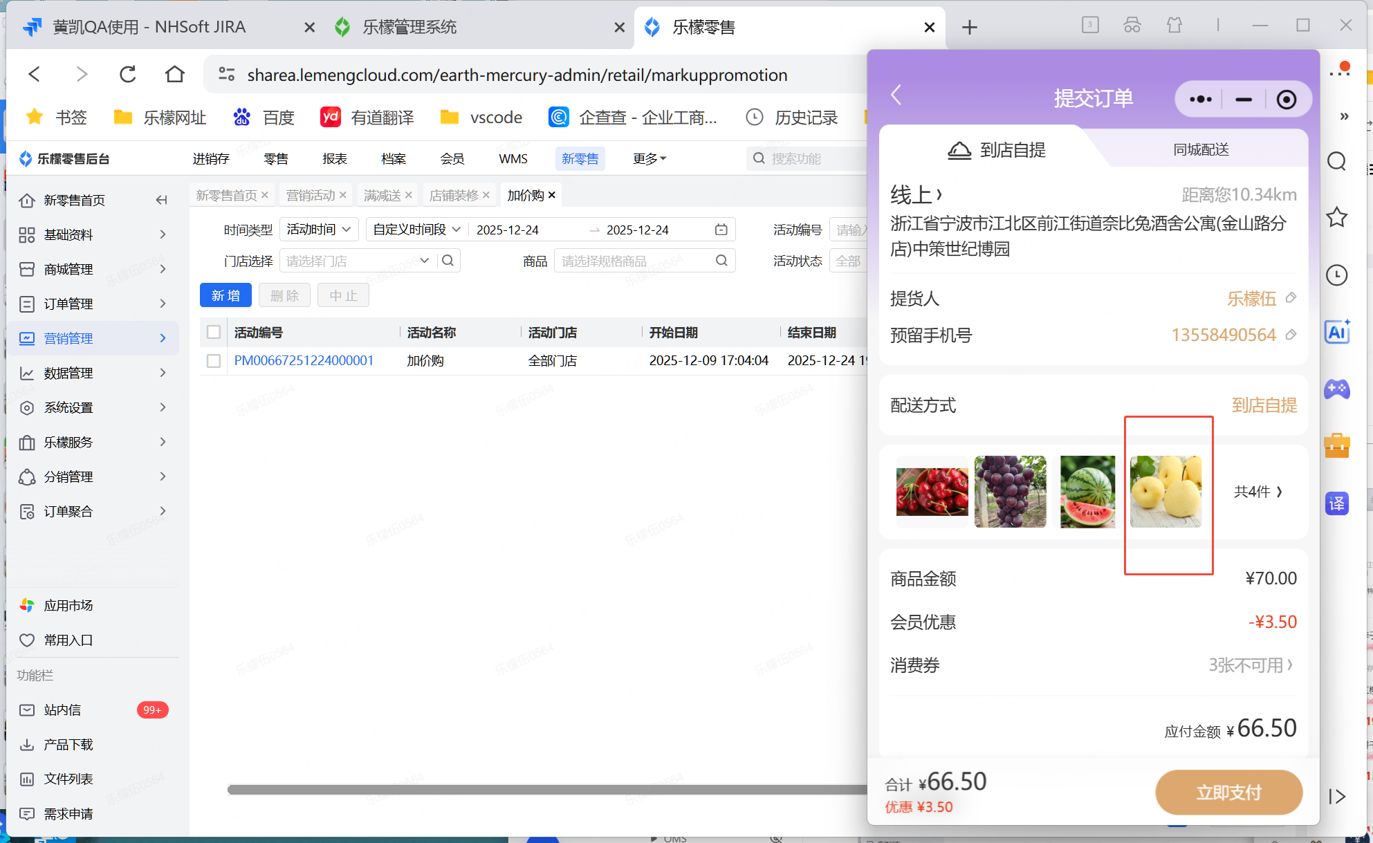 👉【操作路径】:4.活动名称填入,赠送商品12 - 5.领取有效期填入10天 - 6.批量添加,选择雪梨,保存