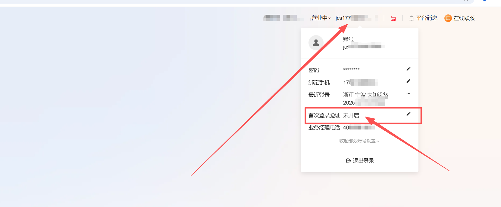 背景:使用财务对账时,需授权账号密码进行登录验证。登录时,三方平台可能会进行二次校验,为了快速验证,商家使用前,需先关闭首次登录验证