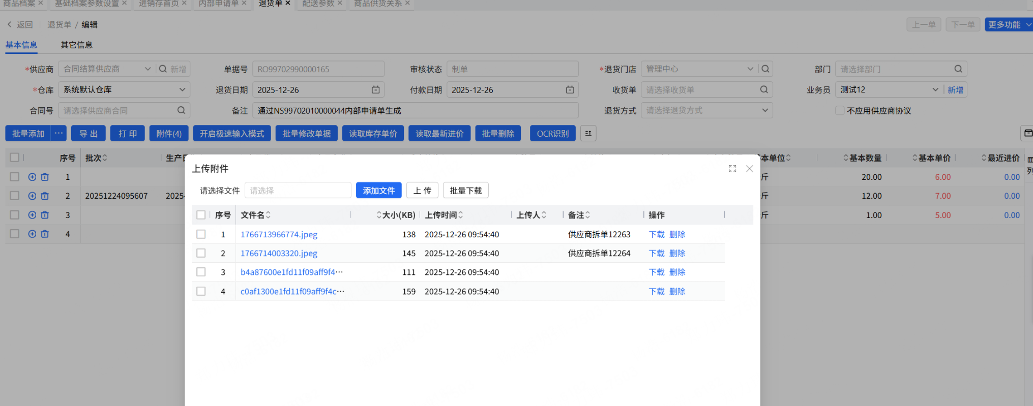 对应单据中商品明细存在附件,需要将附件打包进对应退货单的附件中
